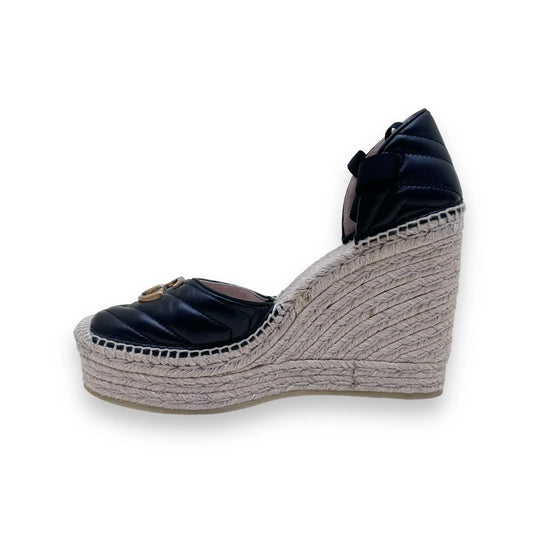GUCCI MARMONT PLATFORM ESPADRILLE LEATHER HEELS BLACK UK8