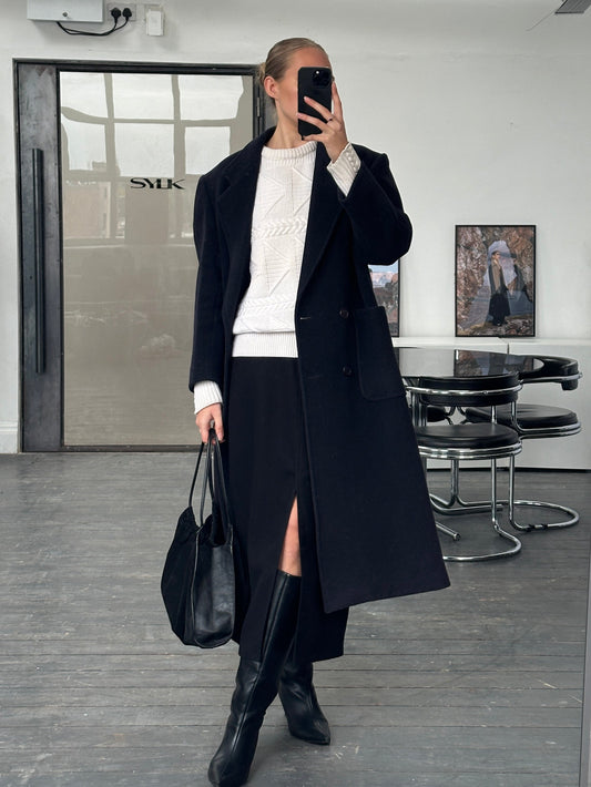 English Vintage 1990s Wool Cashmere Double Breasted Coat - XL