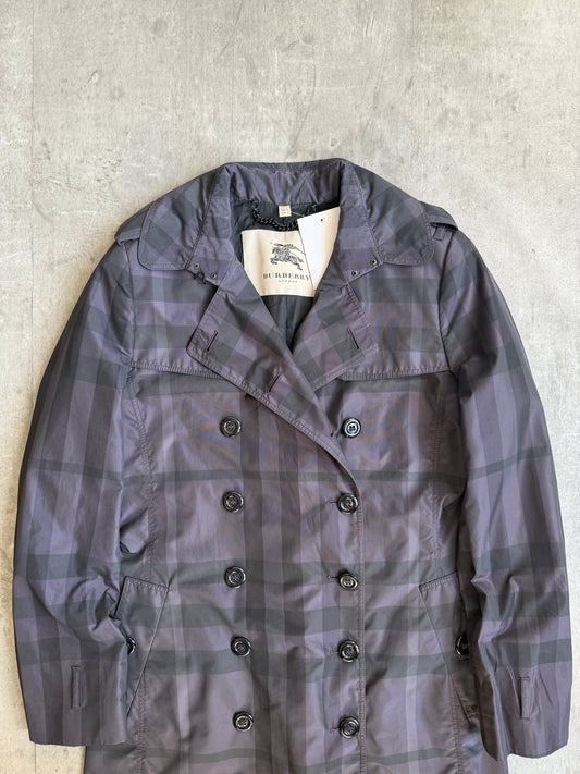 Burberry Purple Plaid Double Breasted Nylon Trench Coat (Sold As Seen)