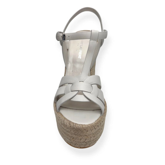 SAINT LAURENT TRIBUTE ESPADRILLE SMOOTH LEATHER WEDGE WHITE 38 / UK5