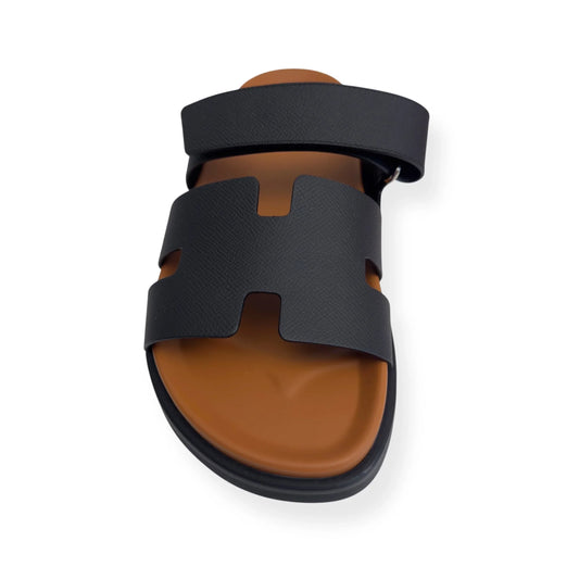 HERMÈS CHYPRE SANDALS NATUREL / BLACK 42 / UK8