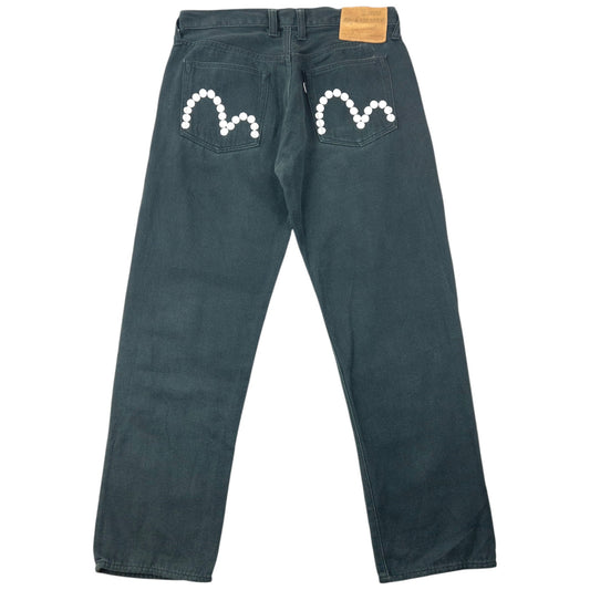 '04 Stussy X Neighbourhood Selvedge Monogram Spellout Print Loose Jeans (33)