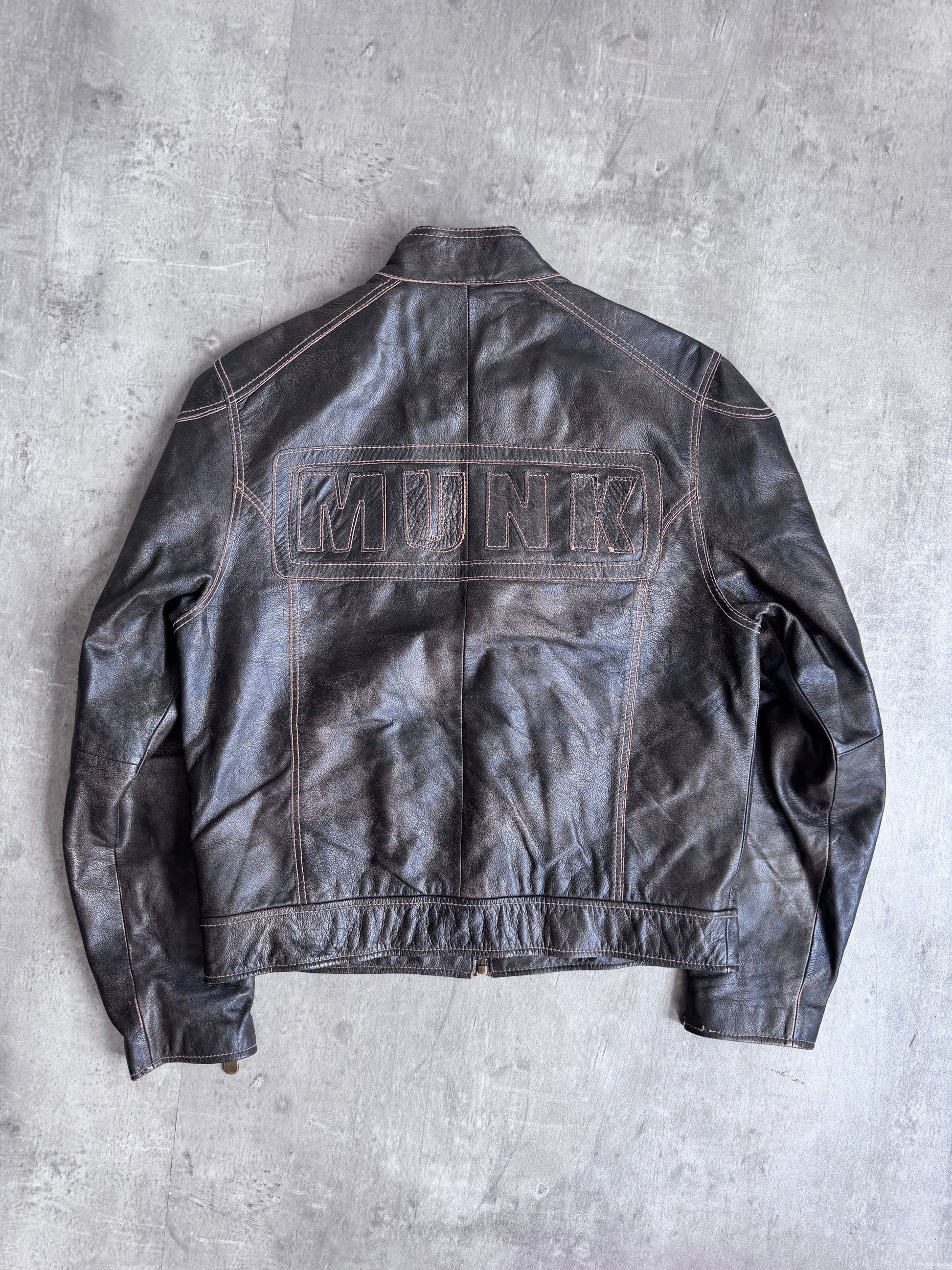 1990s Mid Munk Brown Contrast Stitch Leather Moto Jacket