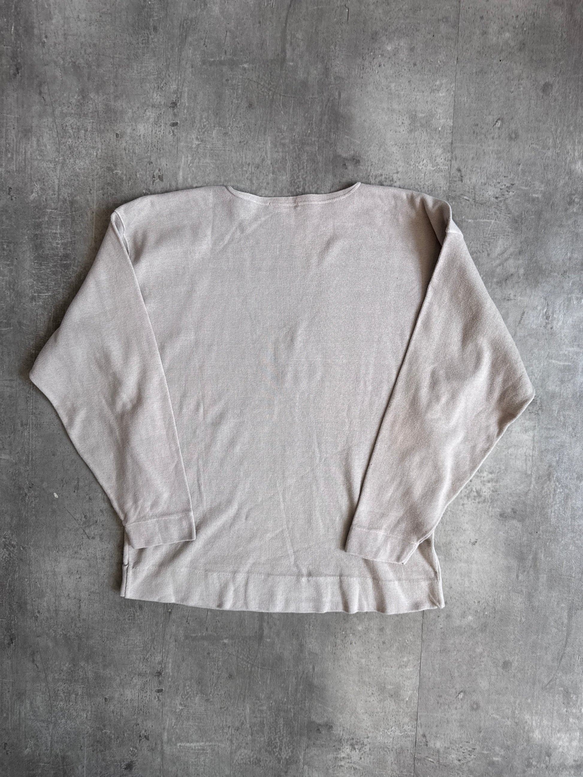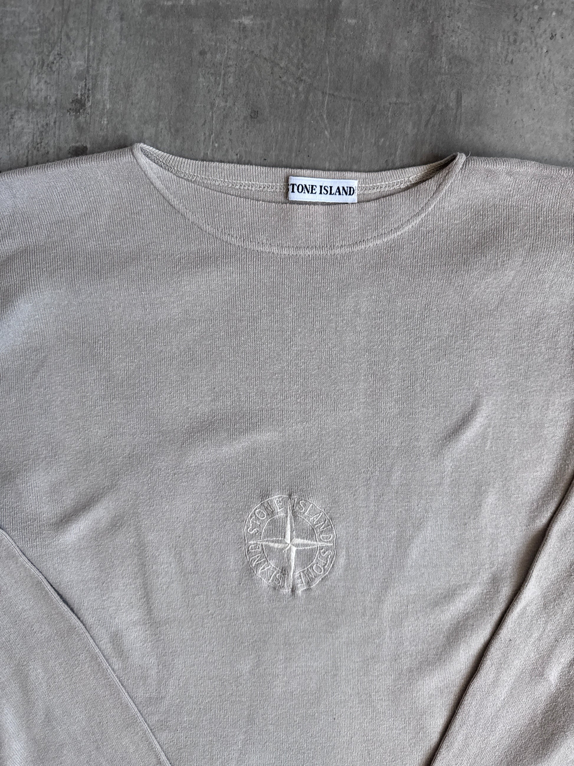 1990s Stone Island Beige Embroidered Compass Logo Boatneck Sweatshirt