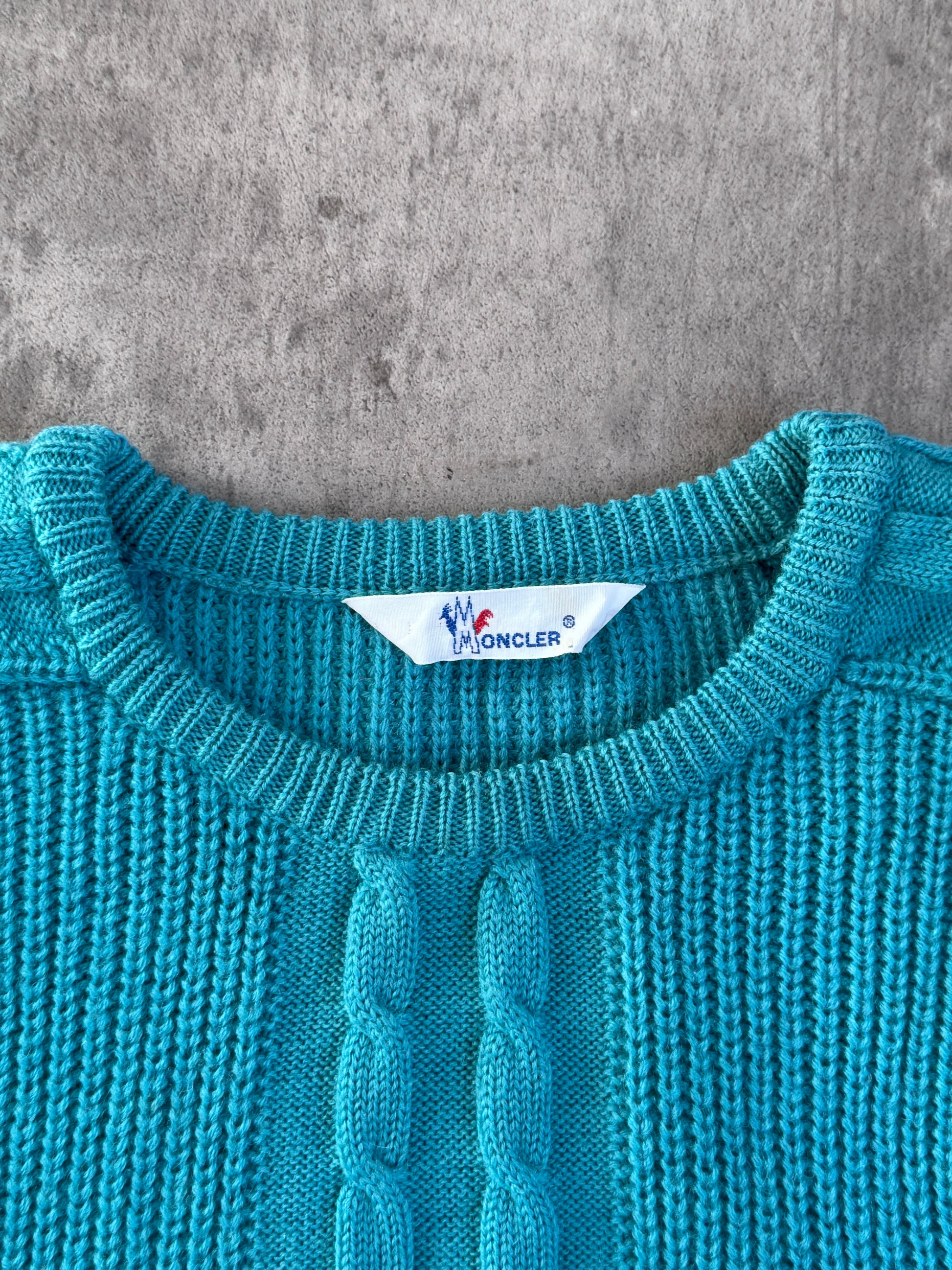 Featuring a classic cable knit construction, the sweater offers texture and depth with a structured yet comfortable fit. The 80s silhouette gives it a slightly boxy, relaxed shape typical of the era. Finished with subtle Moncler detailing, making it a timeless cold-weather staple with collectible appeal.