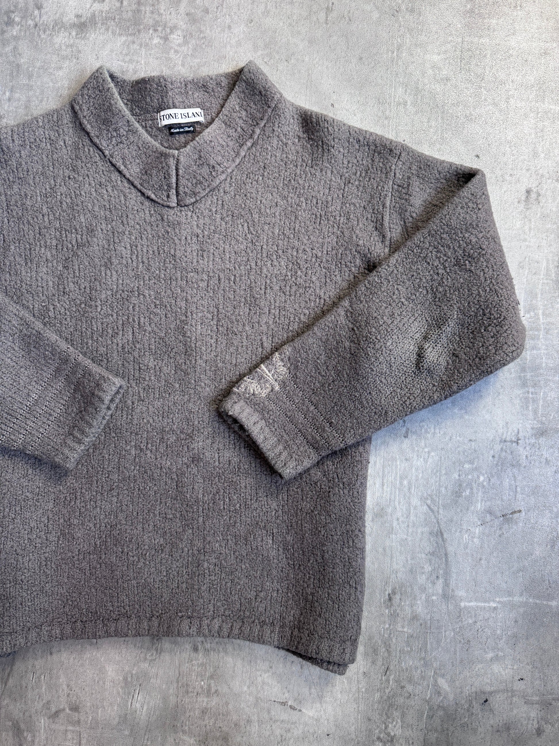 A/W 98' Stone Island Grey Lana Wool V Neck Sweater