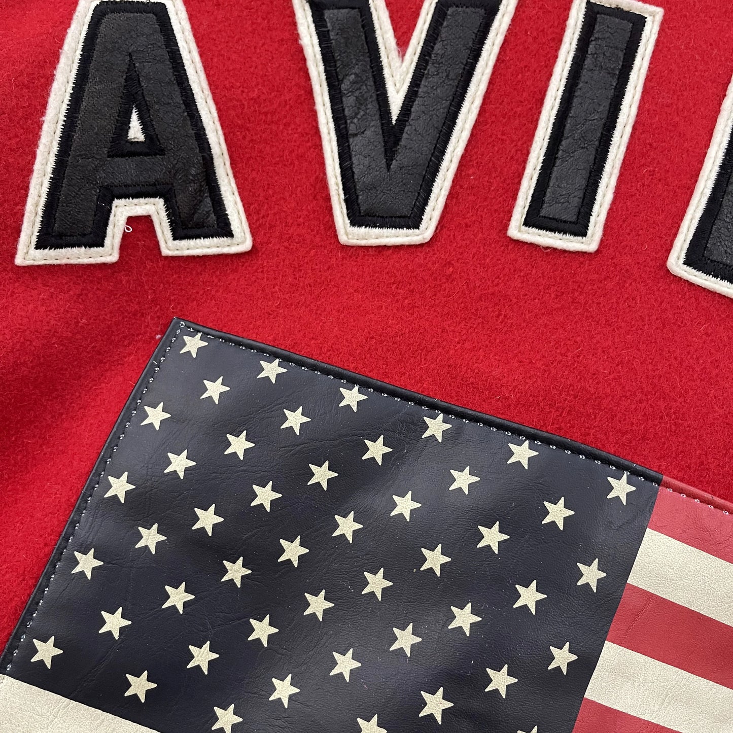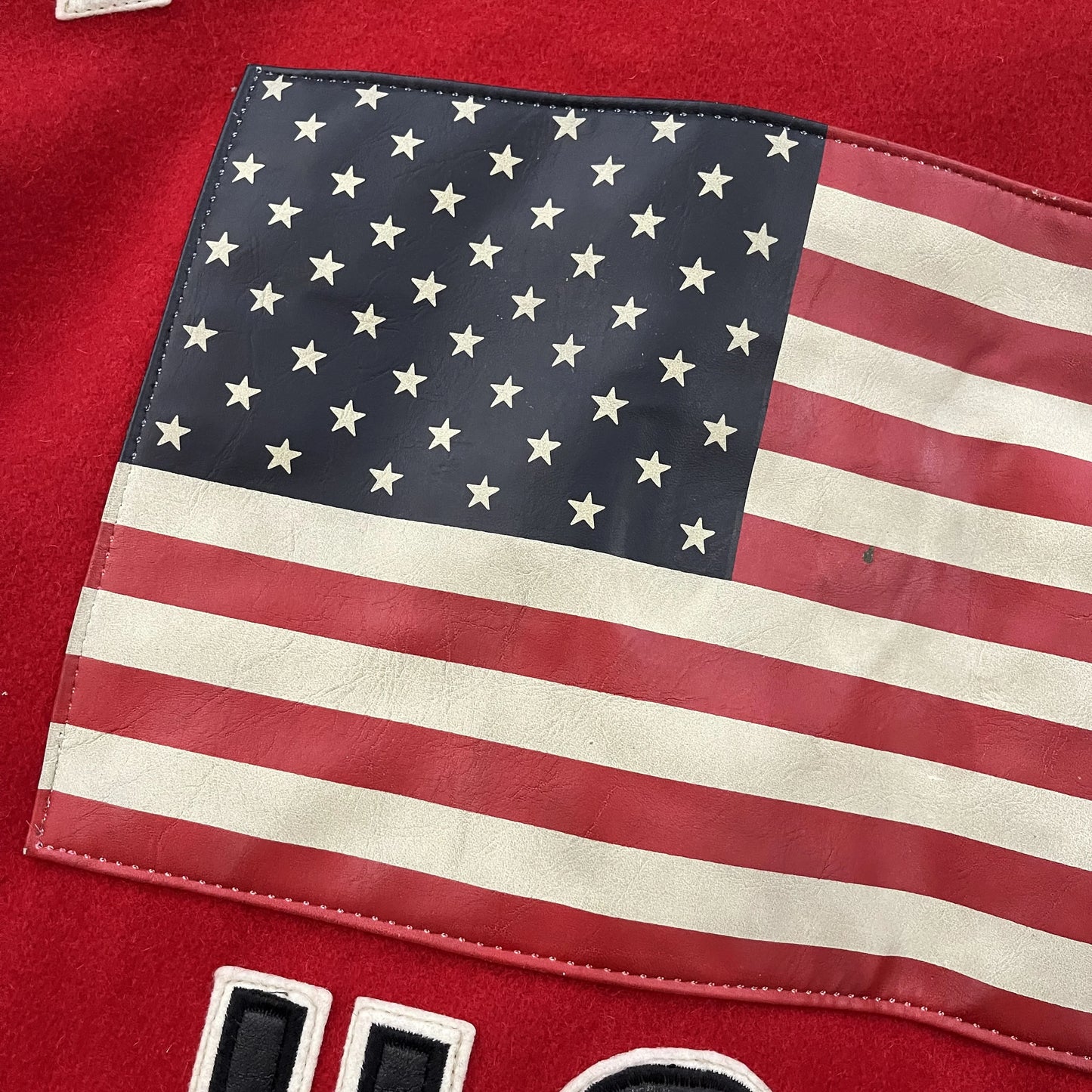 • Spell out lettering and a leather USA flag patch