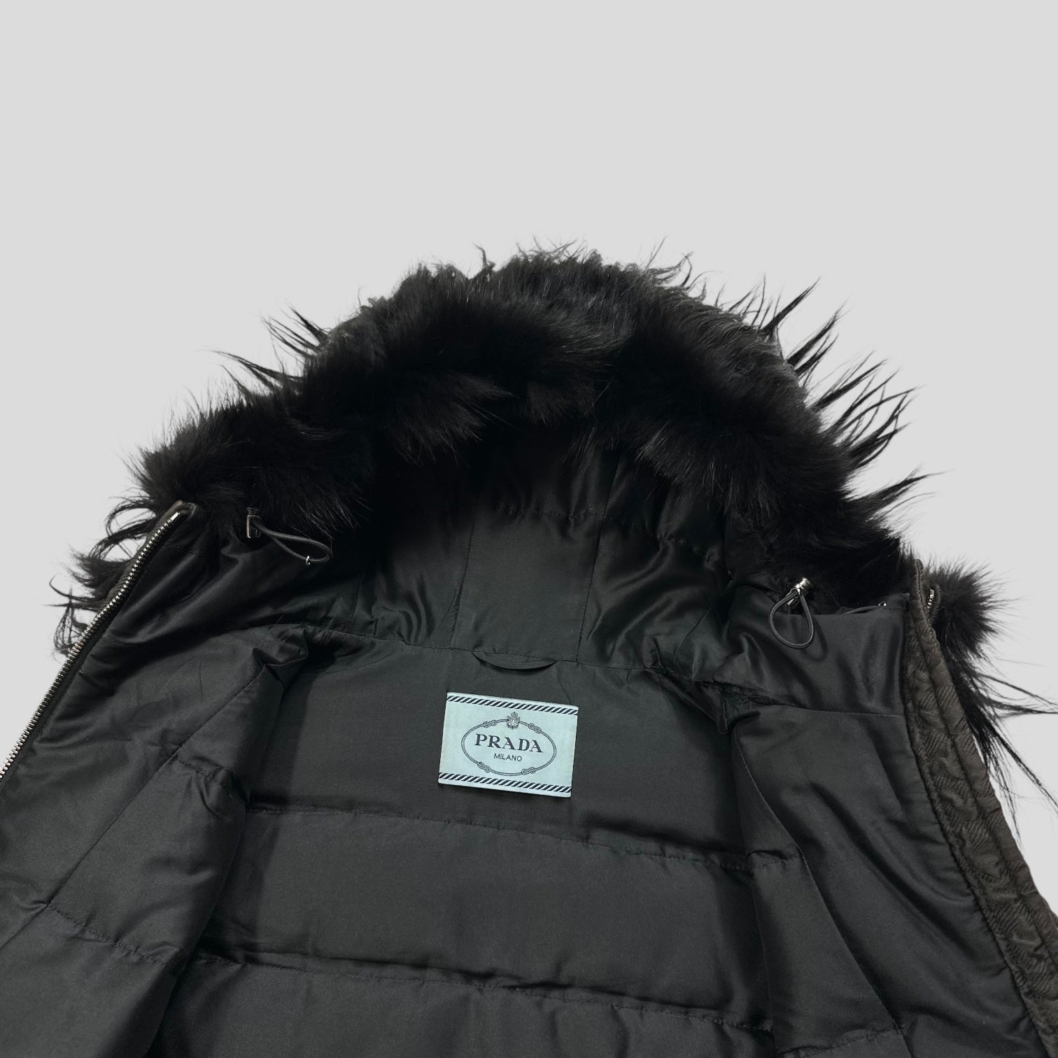 Prada 2014 Extreme Fur Hooded Silk & Wool Textured Puffer Jacket - IT44 (S)
