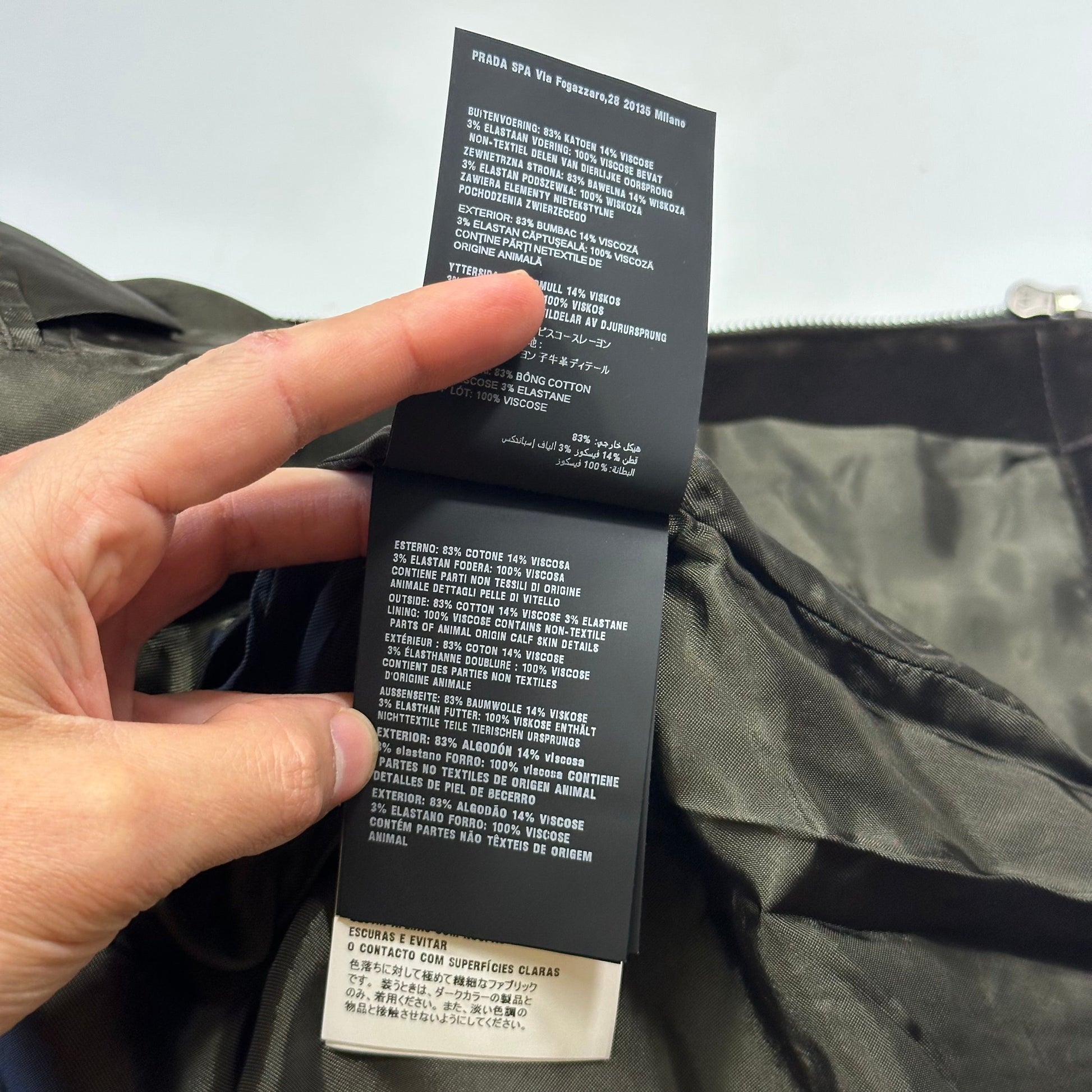Extremely rare and sort after Prada Milano mainline 2024 new season brown ebony velvet velour boxy work jacket trucker jacket, triangle plaque logo to chest, hand pockets to front, multiple inside pockets viscose silk like suit jacket lining, beautiful velour material, made in Italy.