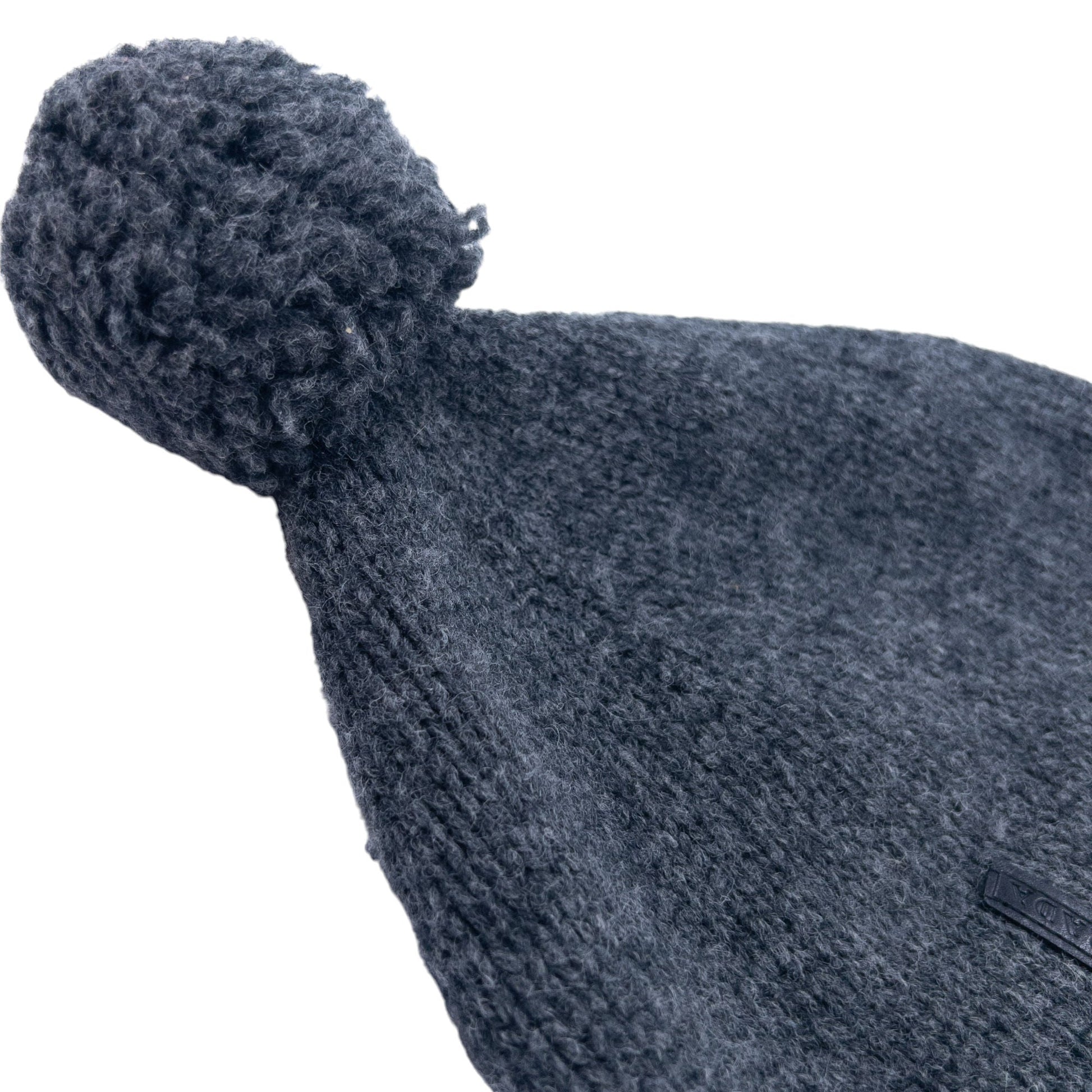• Other info: Grey colour, thick knit, grey pom pom feature, leather brand label