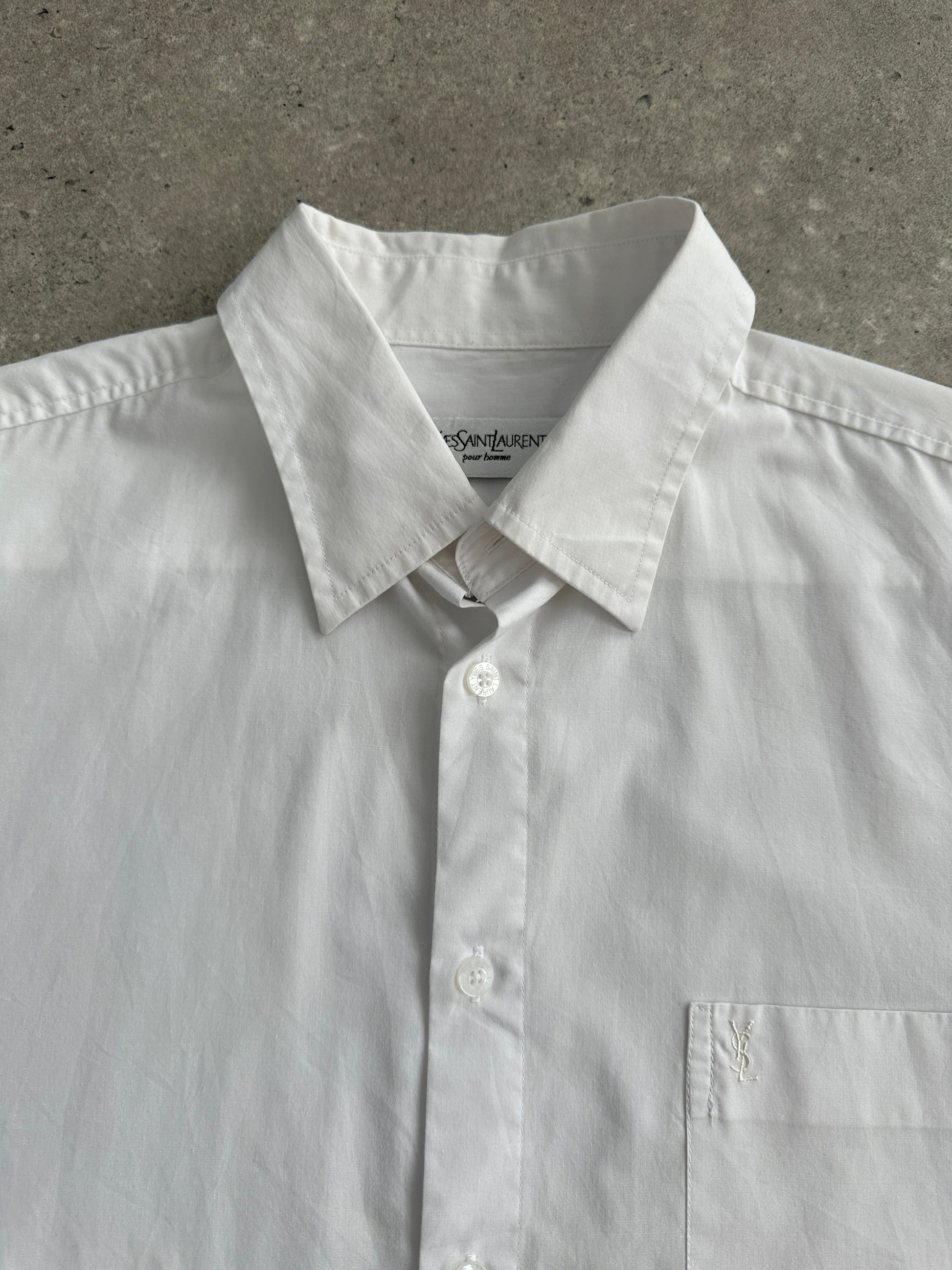 Yves Saint Laurent Pour Homme 2000s Cotton Short Sleeve Logo Shirt - L