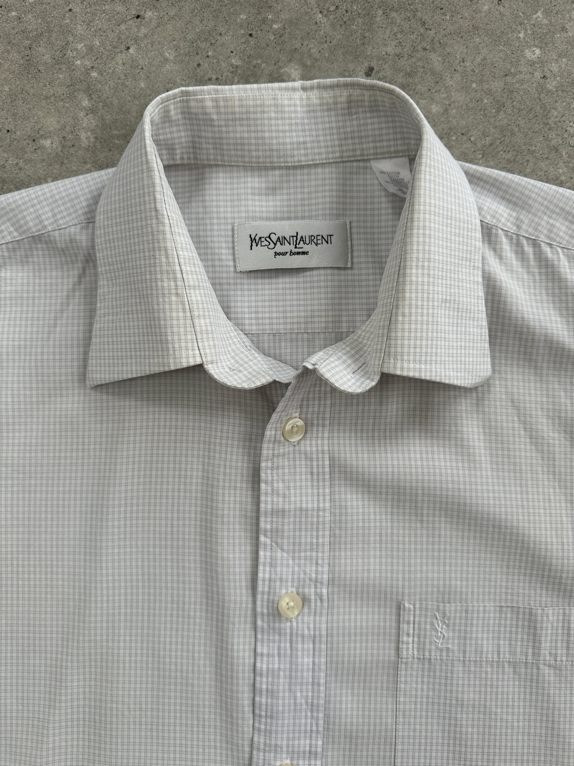 Yves Saint Laurent Pour Homme Cotton Check Short Sleeve Logo Shirt - L