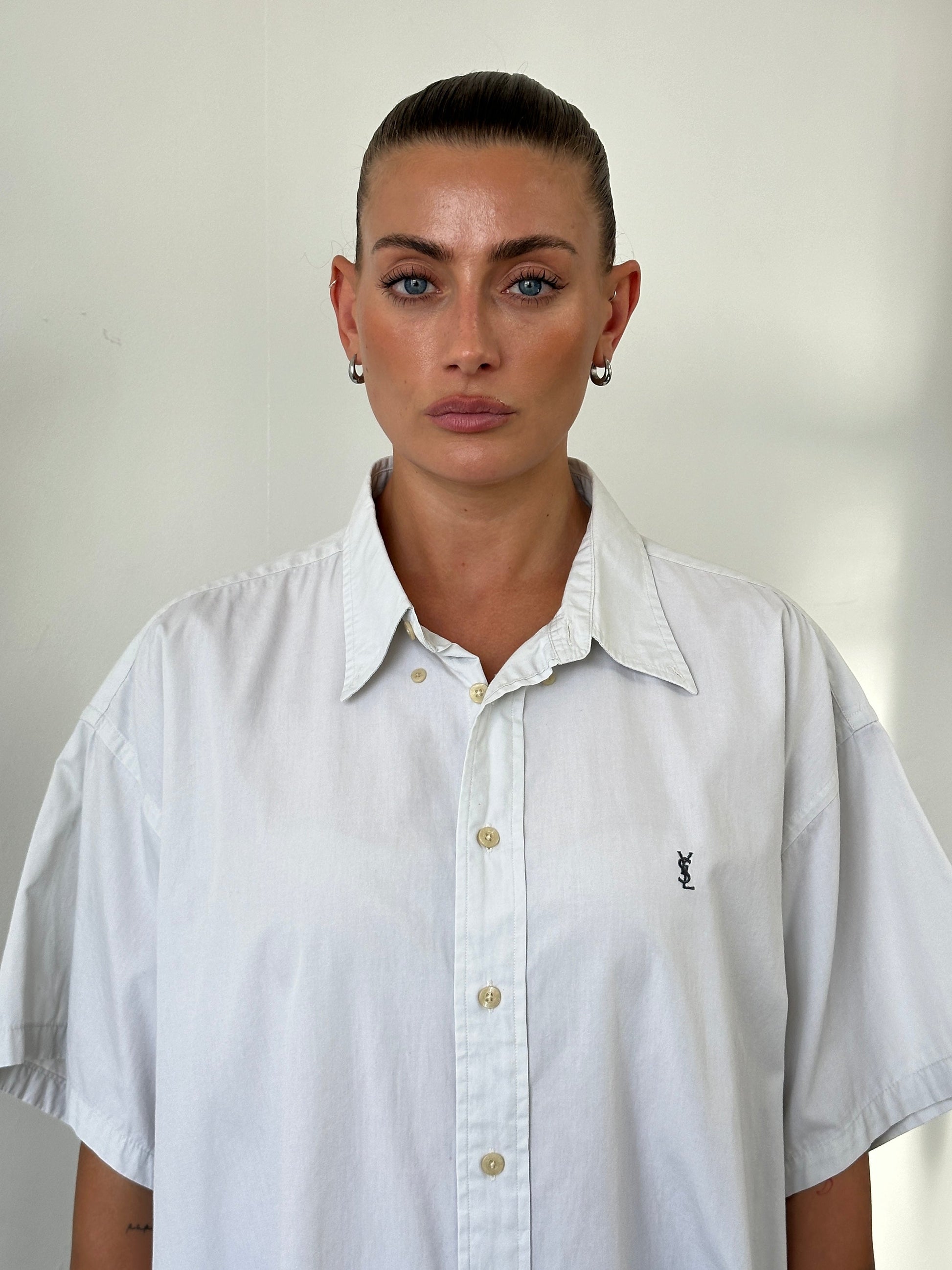 Yves Saint Laurent Pour Homme Pure Cotton Short Sleeve Logo Shirt - XXL