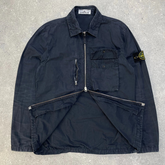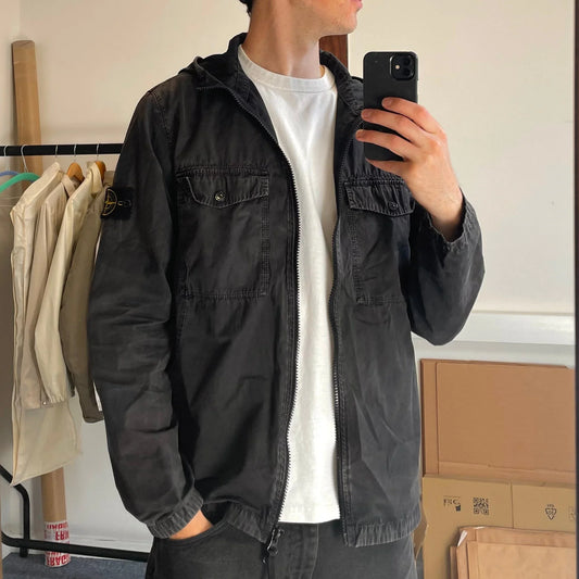 Stone Island Black Brushed Cotton Hooded Overshirt Jacket