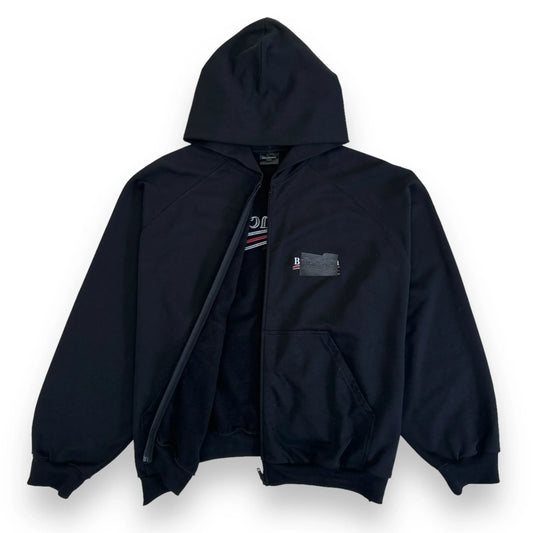 BALENCIAGA GAFFER LOGO-EMBROIDERED COTTON-JERSEY ZIP-UP HOODIE BLACK L
