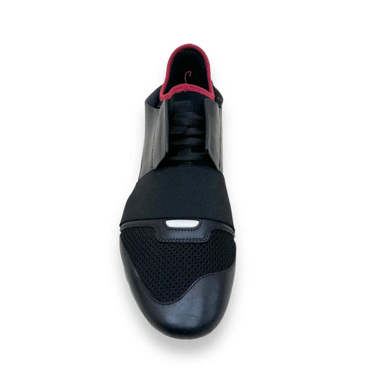 BALENCIAGA LEATHER / MESH RACE RUNNER SNEAKER BLACK / RED UK9