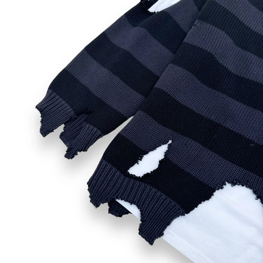 BALENCIAGA DISTRESSED STRIPED KNIT SWEATER GREY M