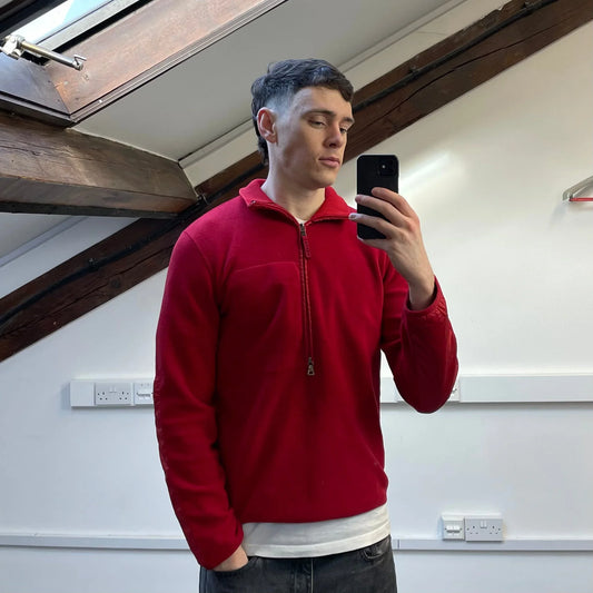 Prada Sport Red 2009 Nylon Elbow Dual-Zip Lightweight Fleece Jumper