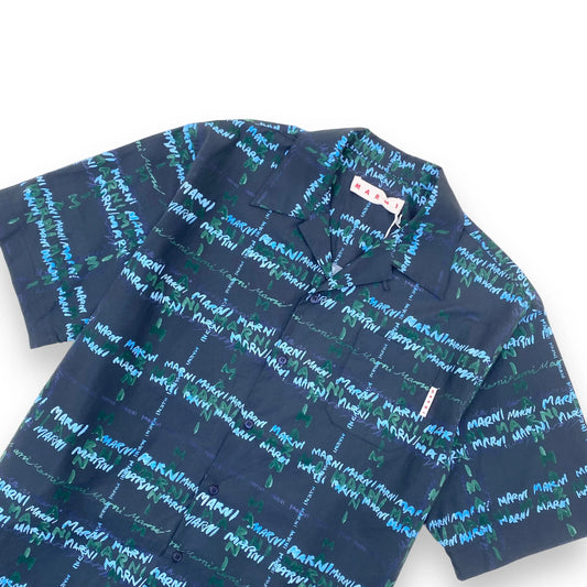 MARNI LOGO-PRINT COTTON SHIRT NAVY L