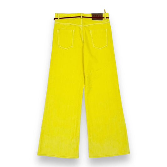MARNI LOGO-PATCH STRETCH-COTTON FLARED TROUSERS YELLOW 34”