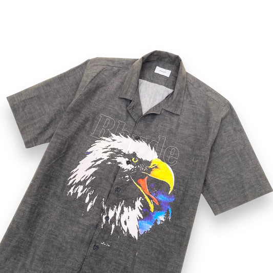 RHUDE EAGLE-PRINT BOWLING SHIRT GREY M