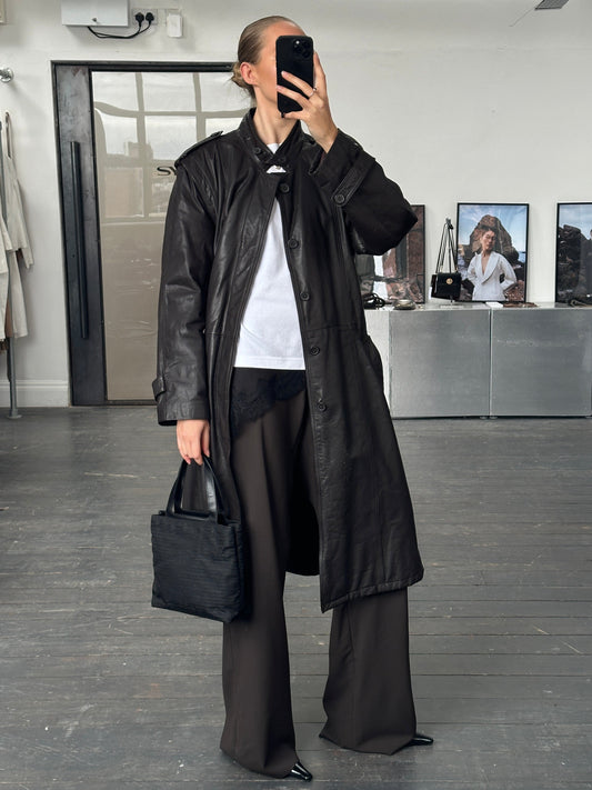 Italian Vintage 1990s Belted Leather Trench Coat - L/XL