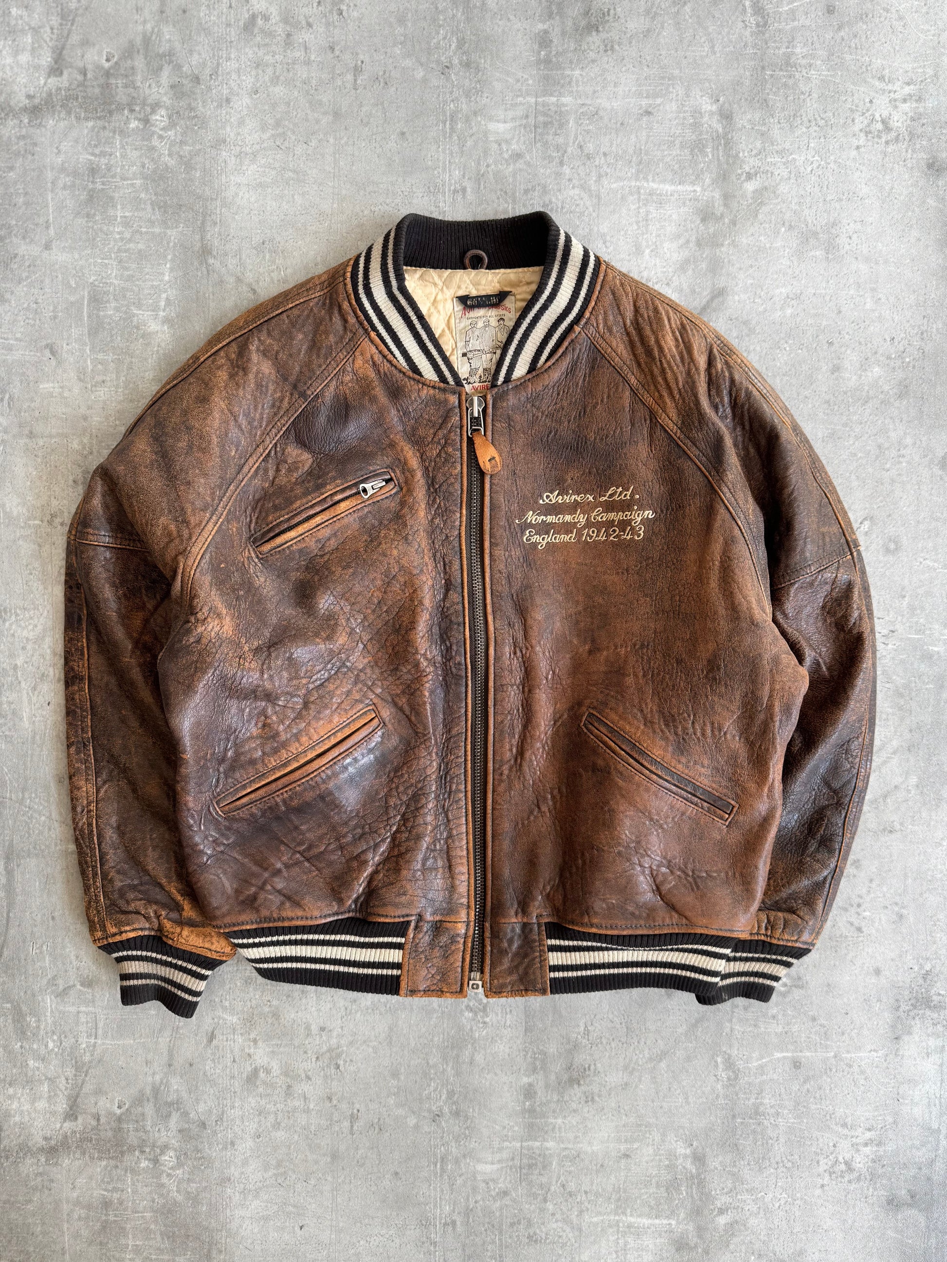 Avirex 'Normandy Campaign' Distressed Brown Leather Flight Jacket