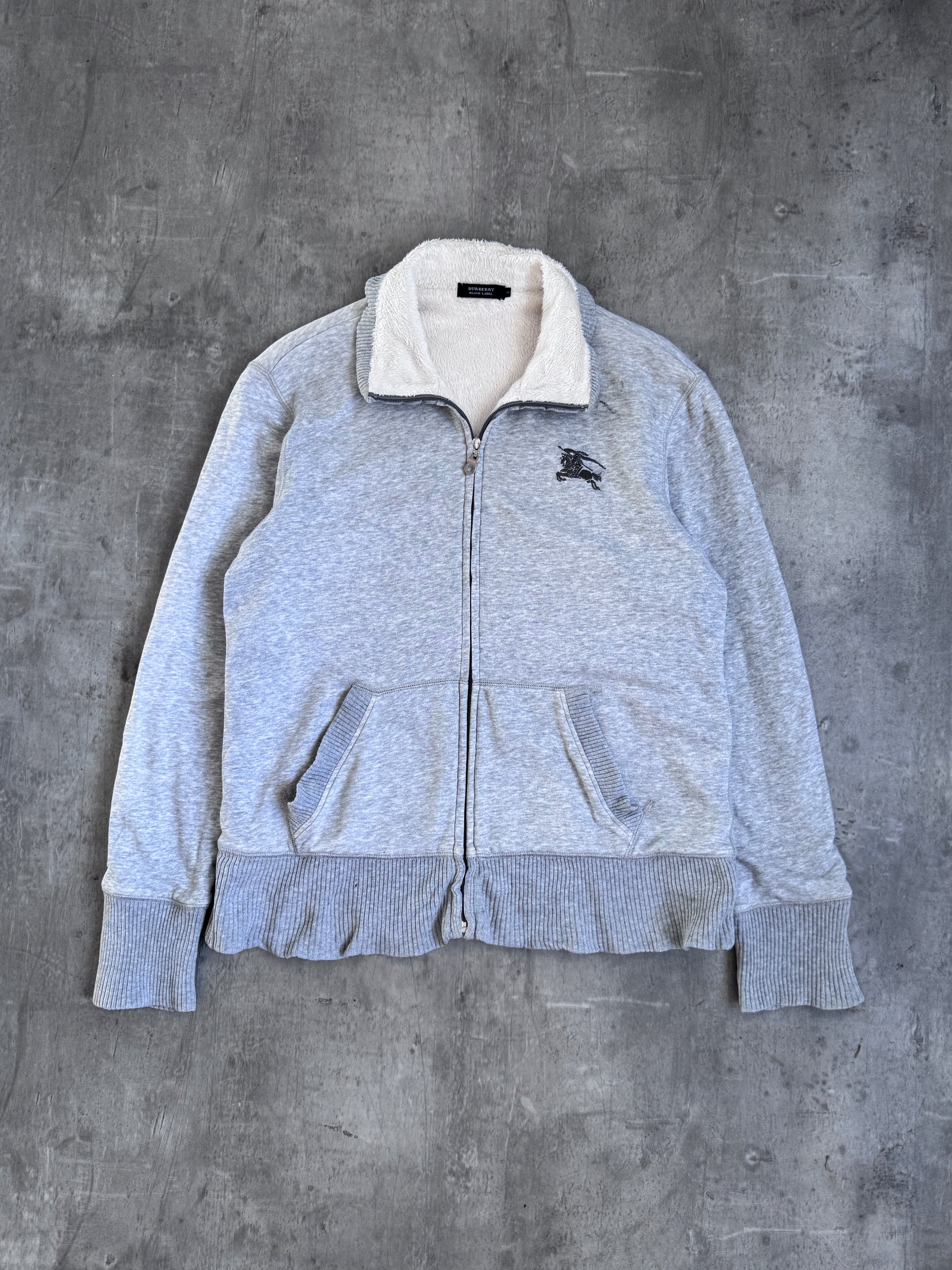 Burberry Black Label Faux Fur Lined Grey Zip Up Sweater