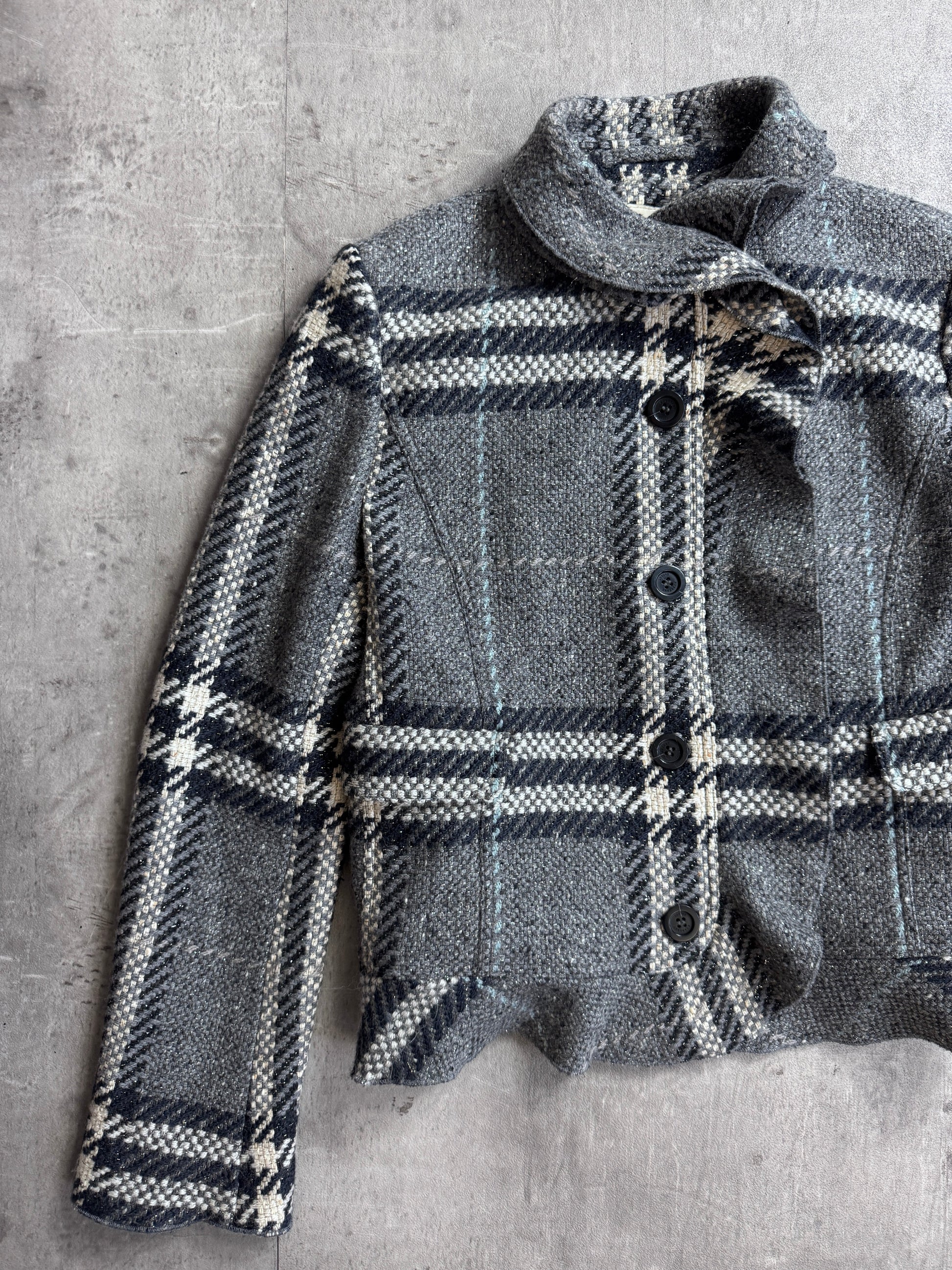 Burberry Double Layer Grey Nova Check Tweed Blazer