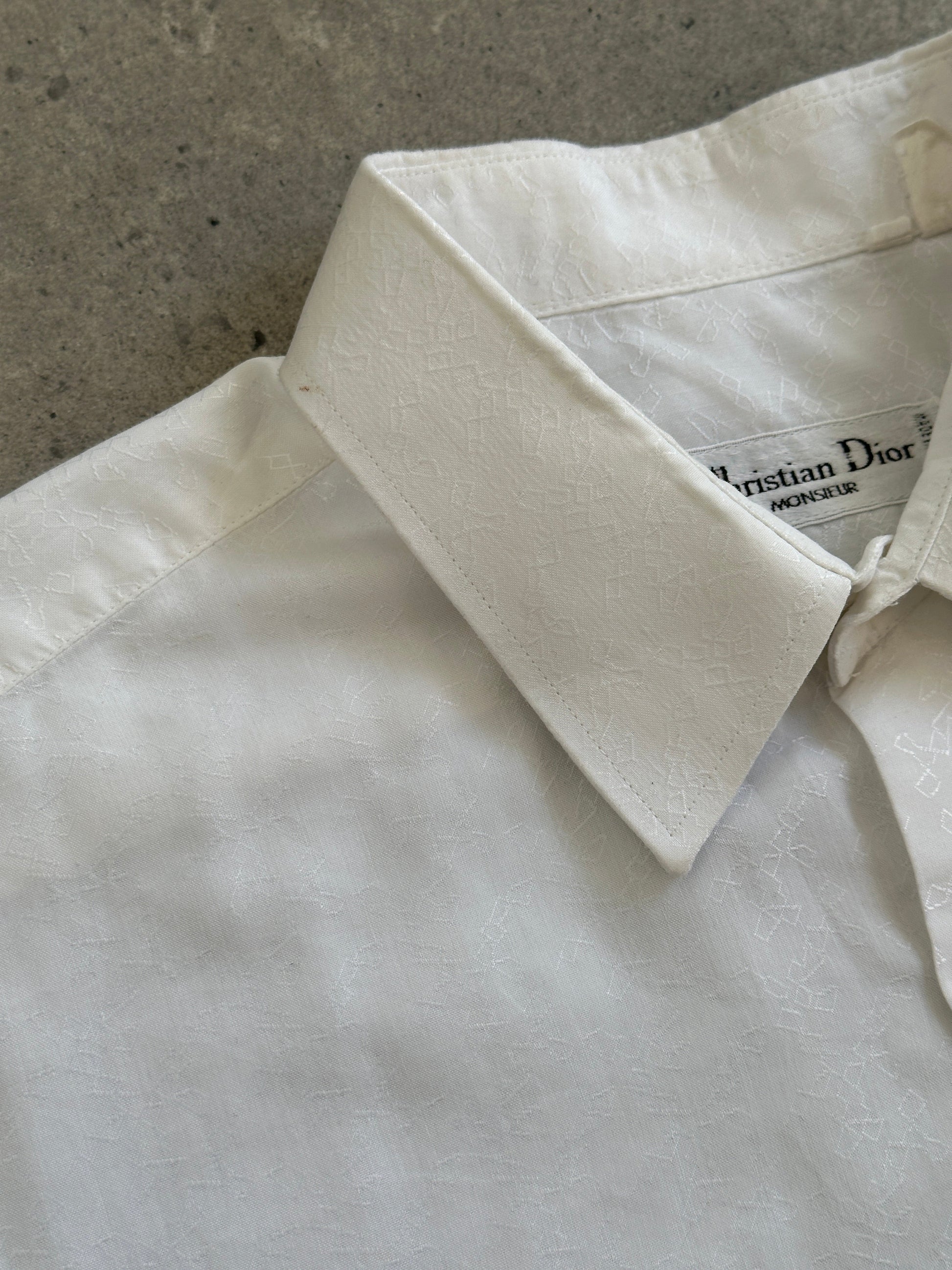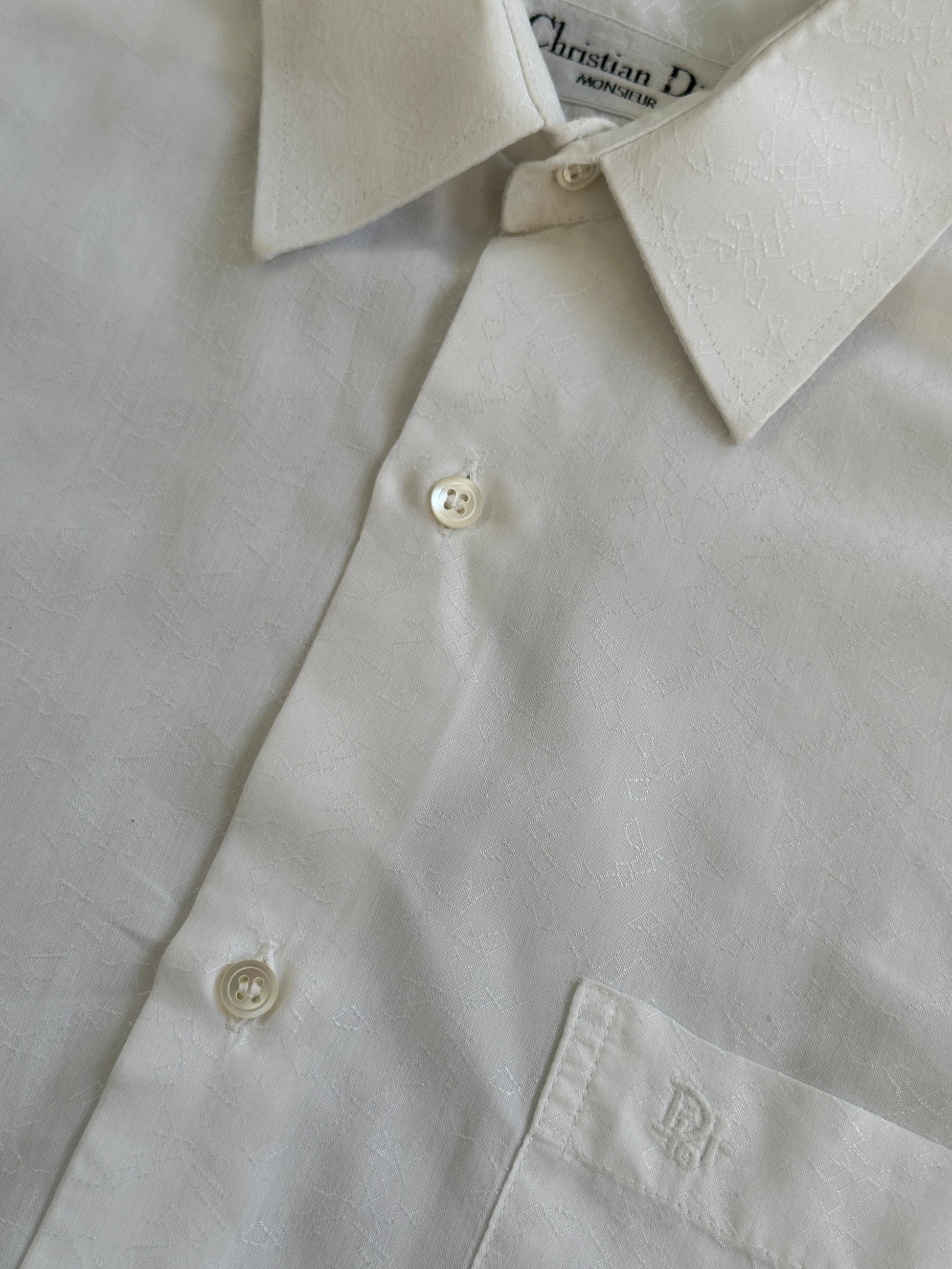 A vintage 1990s Christian Dior Monsieur Paris shirt in a clean white tone with subtle woven texture. A softly structured silhouette that feels refined and understated. Part of the made in France, Monsieur Paris line.