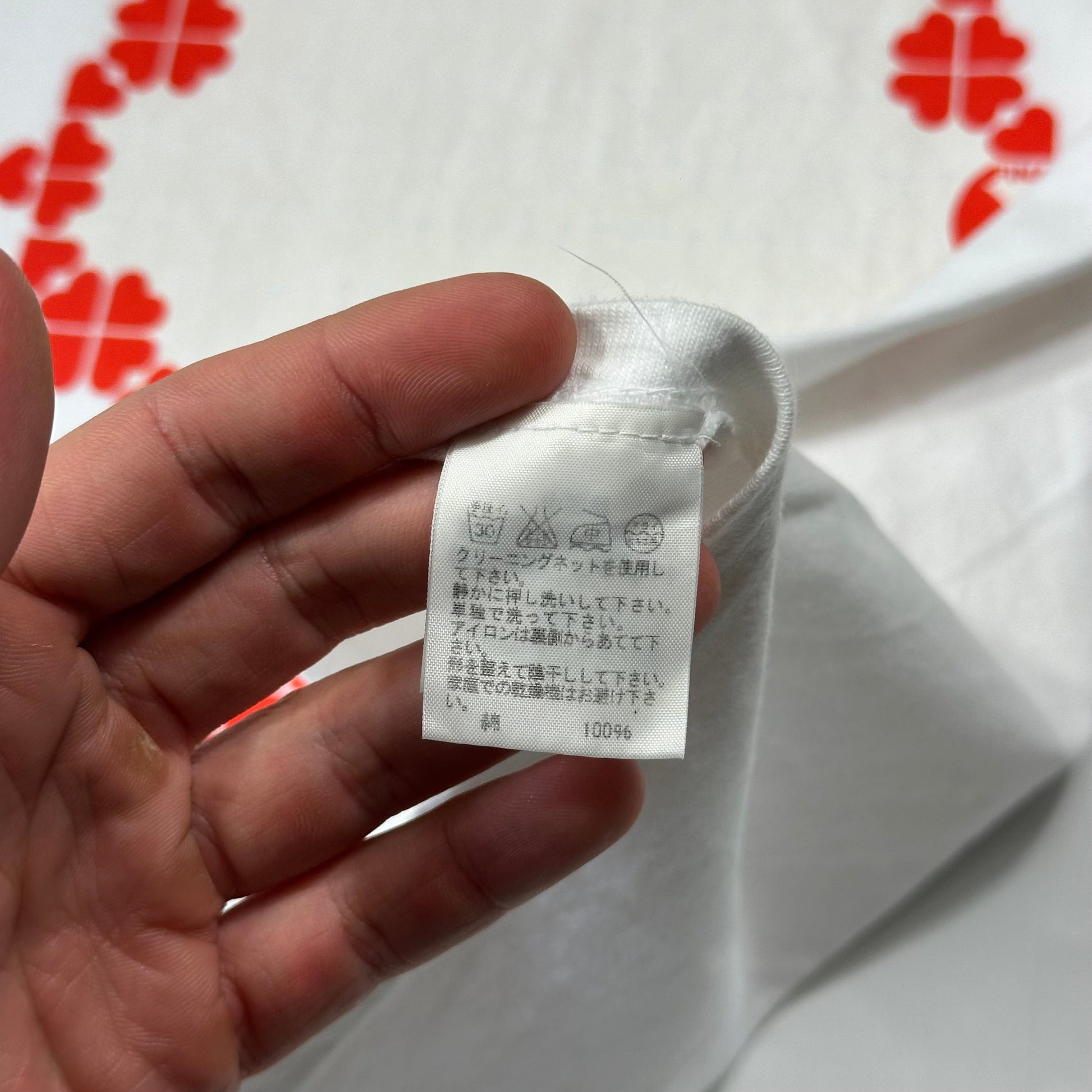 Very rare 2002 Final Home white cotton tee with monogram white love heart graphic surrounded by red hearts and a Final Home logo on the right side.