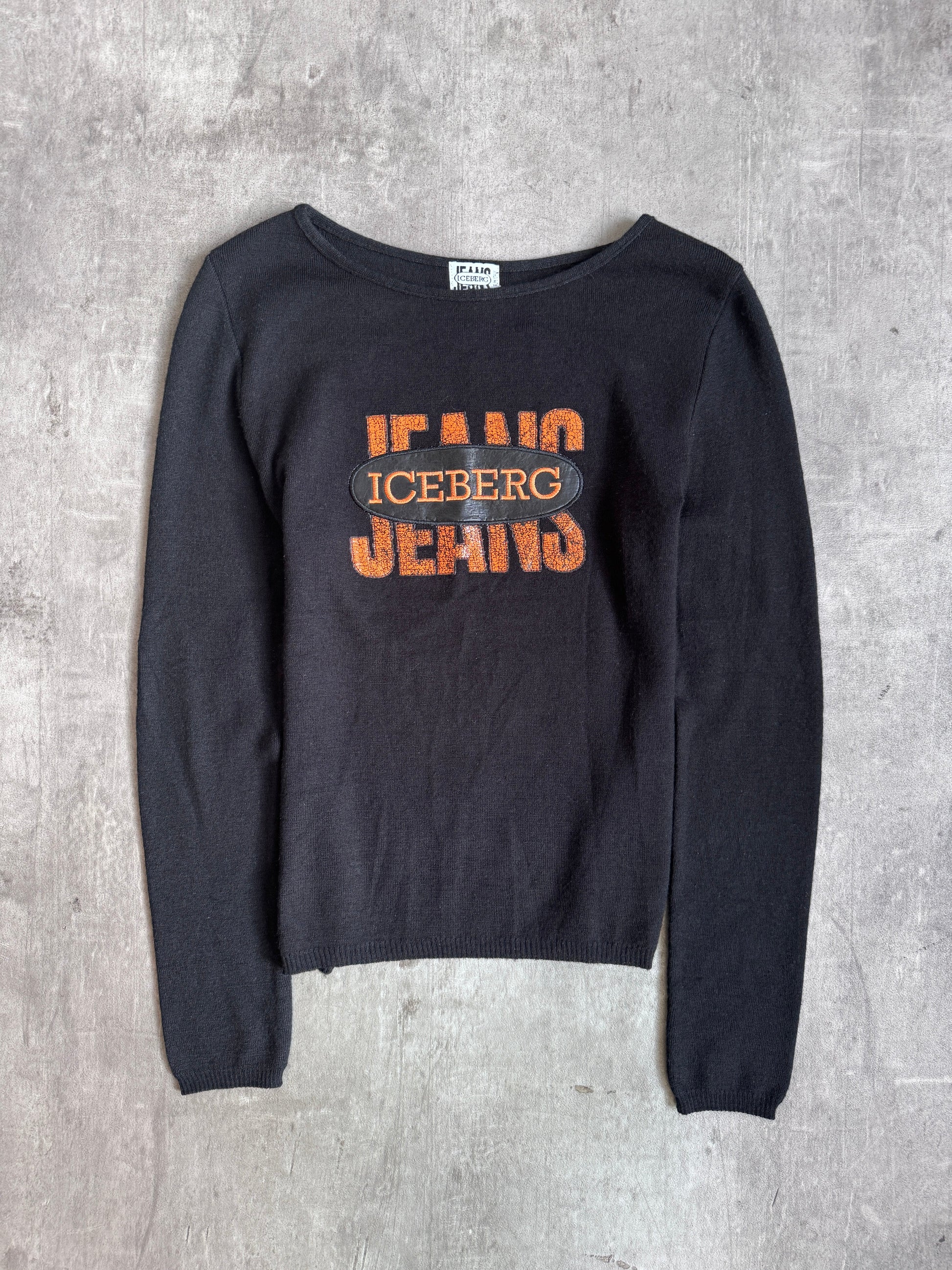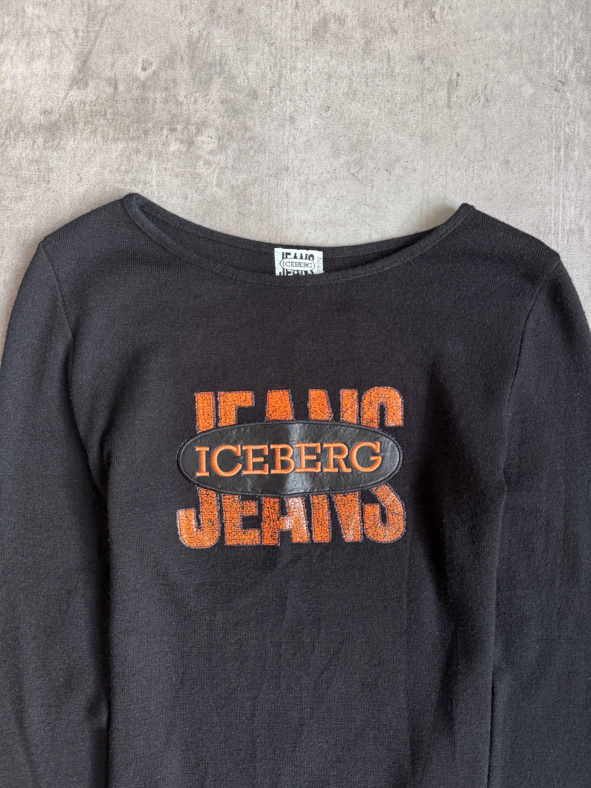 ICEBERG Jeans Logo Patch Black Wool Blend L/S Tee