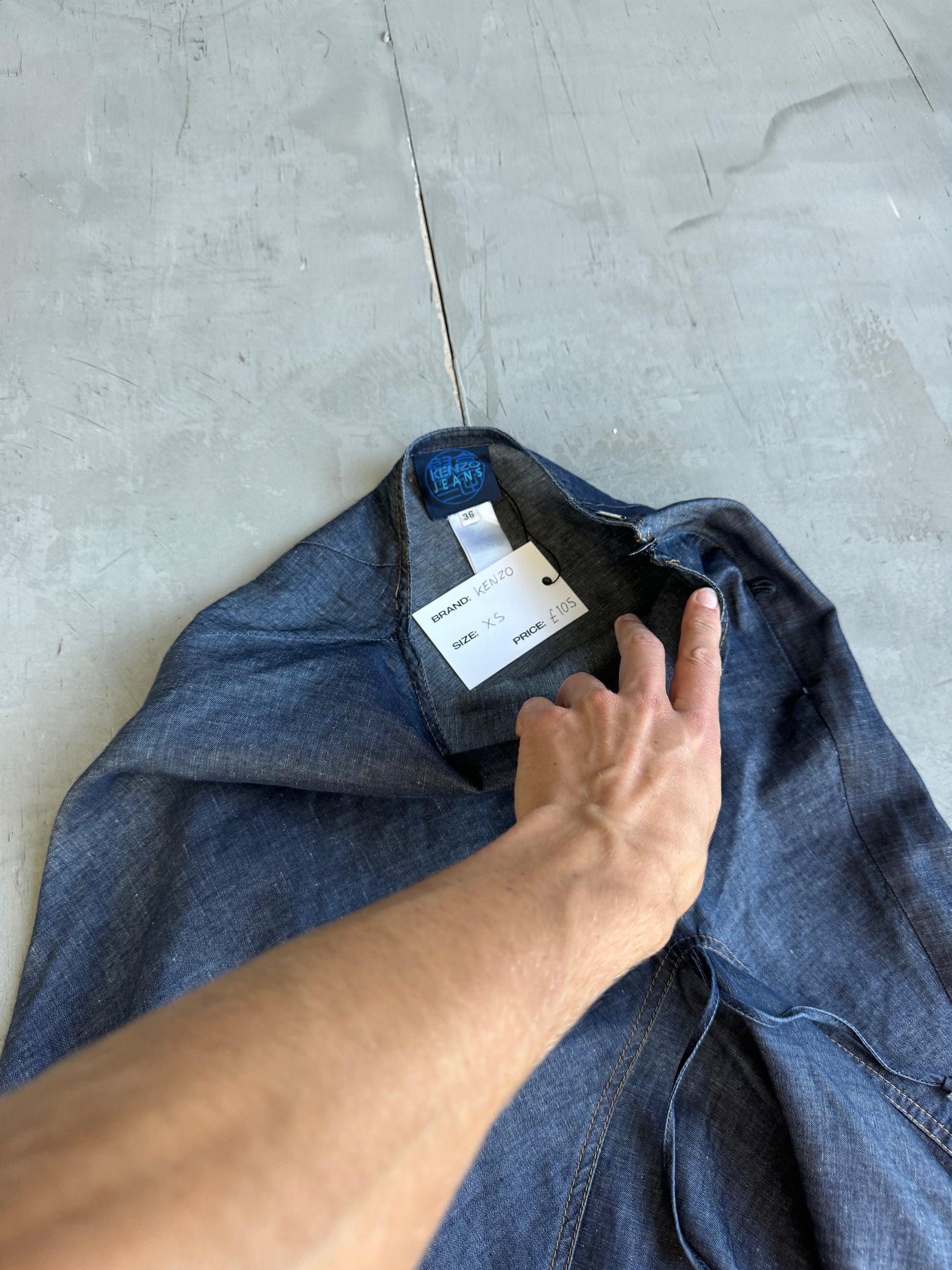 Kenzo Asymmetric Blue Cotton Maxi Skirt - S