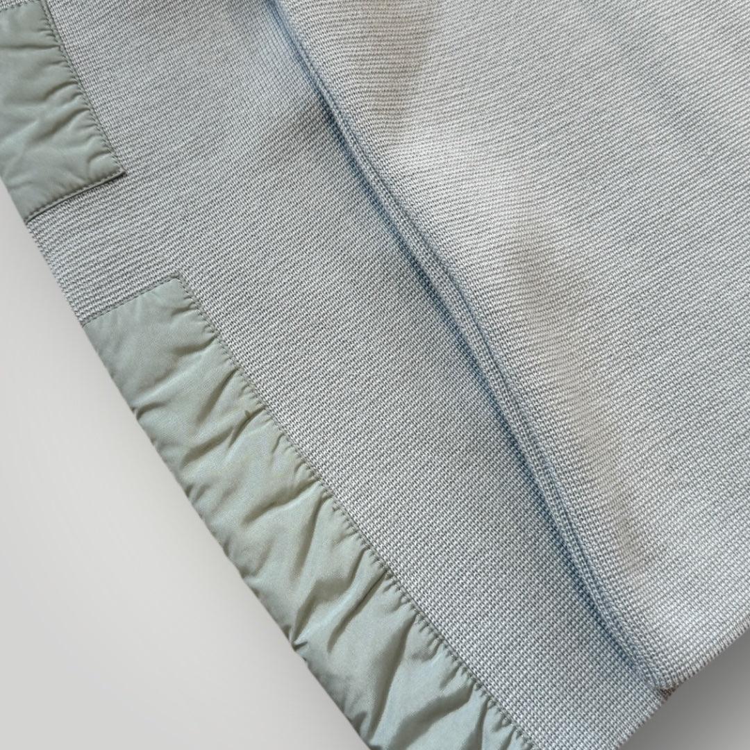 • Nylon sleeve patches on wool base with raw seams on hem and cuffs