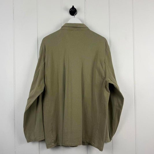 Classic late-90s Stone Island structured overshirt crafted from thick, heavyweight cotton with a firm hand feel and clean silhouette. Features a pointed collar, full button front, chest pocket with branded button detail, and subtle Stone Island branding. A versatile layering piece with a workwear-inspired structure typical of the era.Condition: great with light fading from normal wearSize: L (fits large)Measurements: Chest (pit to pit) 23.5”, Length (top of shoulder to hem) 31.5”