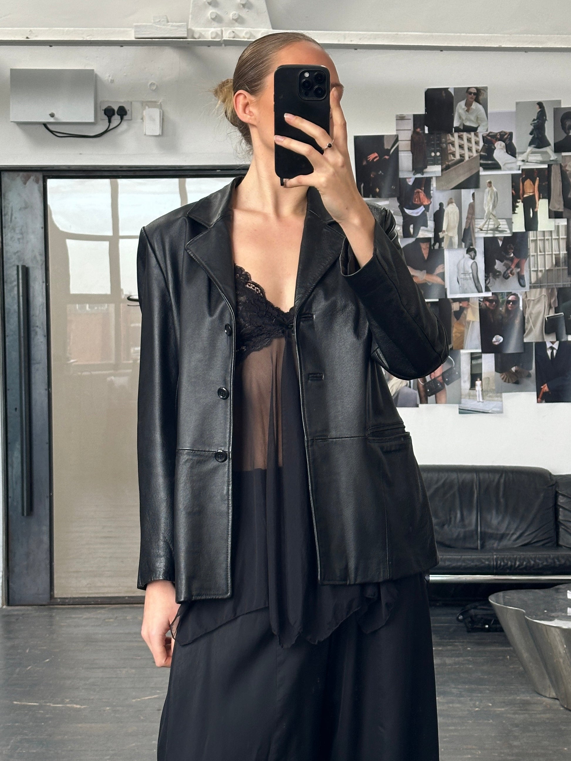 ~ Smooth black leather with a structured tailored finish