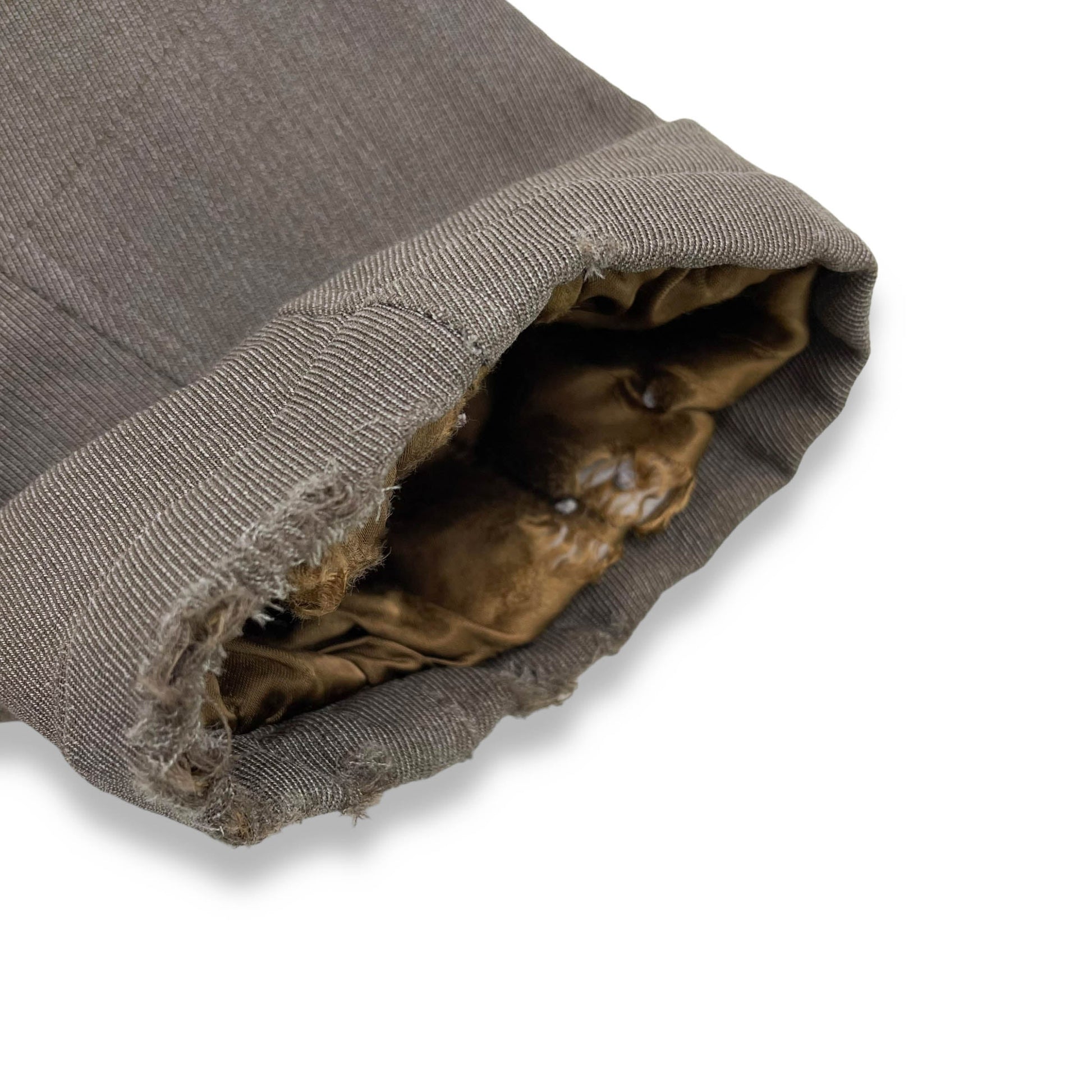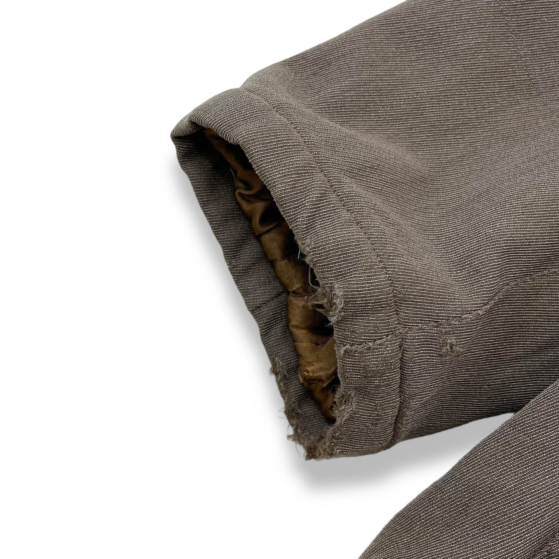 - Flaws - Missing Hood - right pocket seam has been re-stitched, only noticeable by and extra seam on the inside - Missin bottom Popper and bottom button has been replaced - Wear to Cuffs