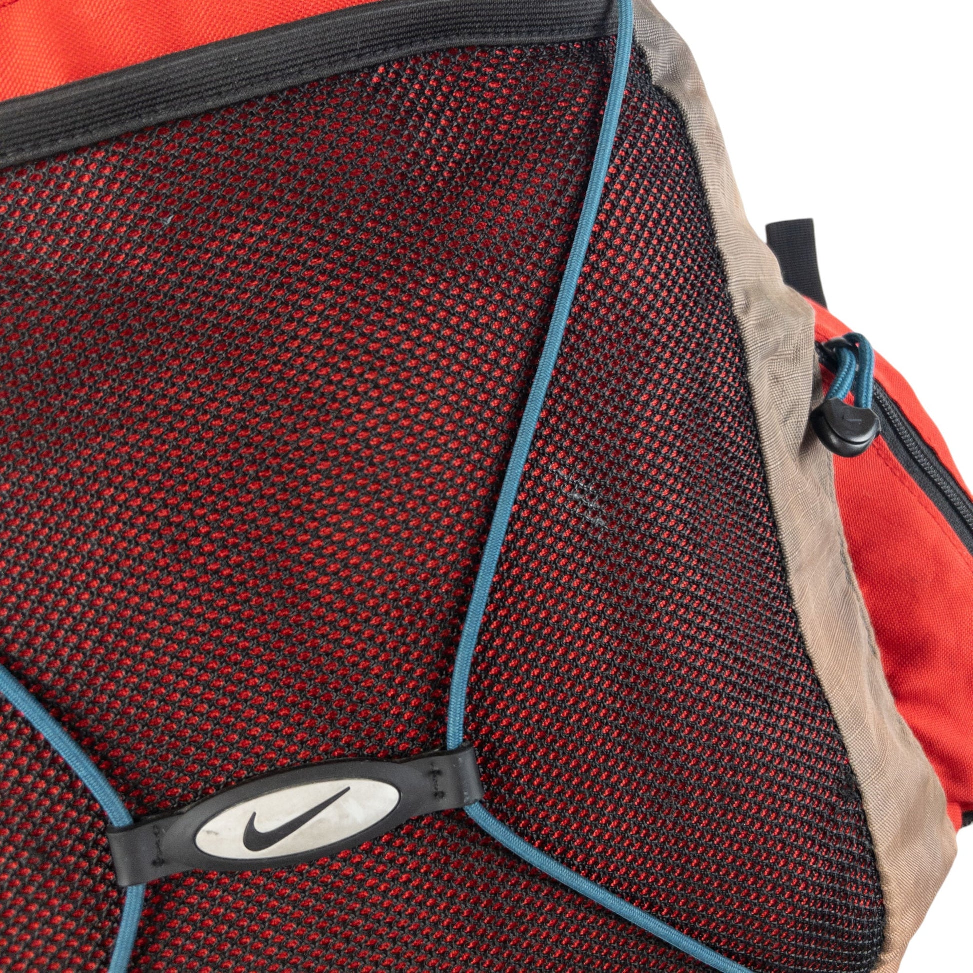 • Other info: Red colour, grey and navy colour block pattern, front mesh pocket with elastic cord detail, embossed fastenings, some discolouration and marks as shown