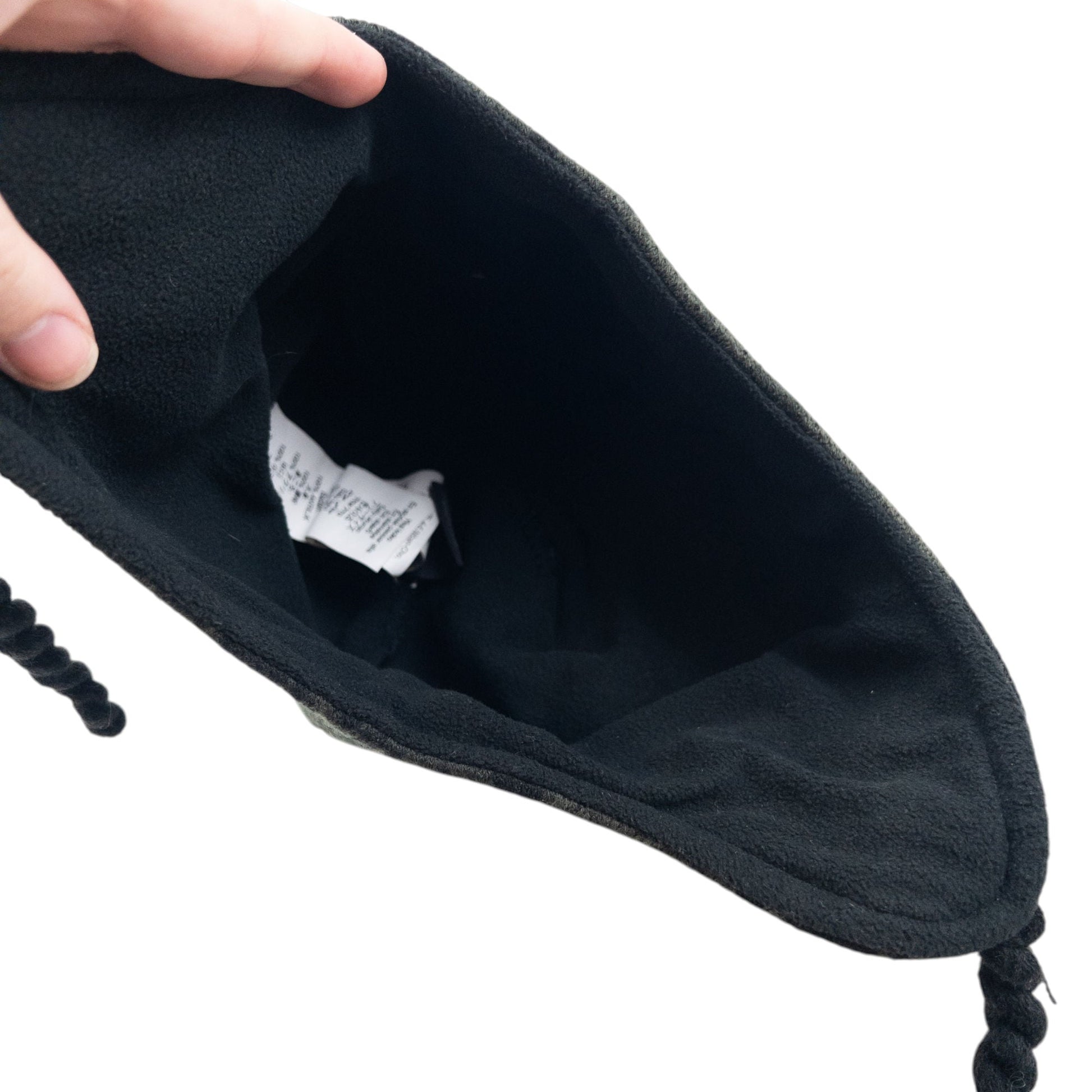 • Other info: Green colour, gold embroidered skull, fleece lining, earflap design with twist tassels, minor general wear as seen