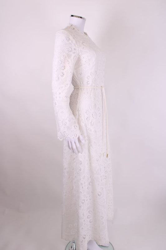 Zimmermann L/S Lace Rope Belt Dress White S