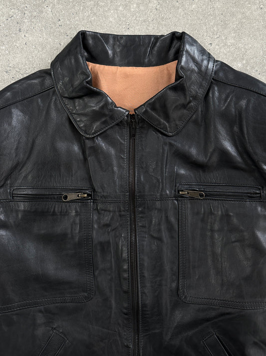 Vintage 1990s Boxy Cropped Leather Jacket - L