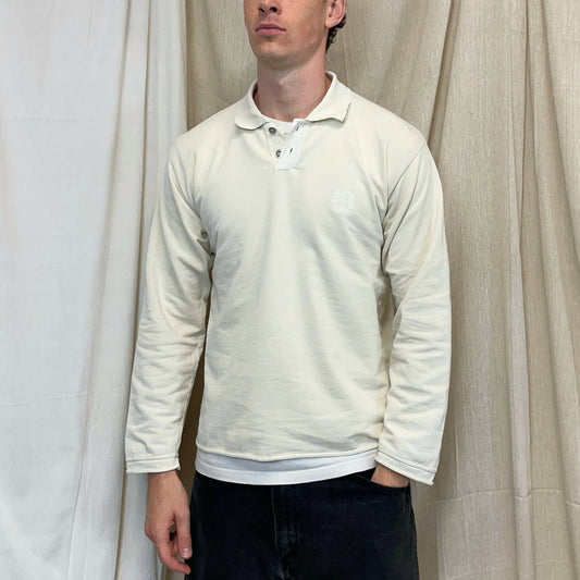 Stone Island Cream 80s Silver Button Longsleeve Polo Shirt