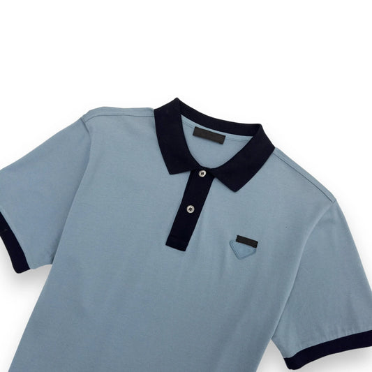 PRADA CHEST LOGO POLO SHIRT BLUE / BLACK M