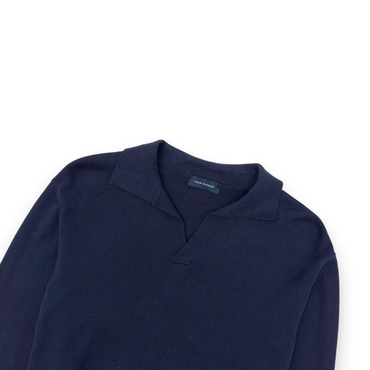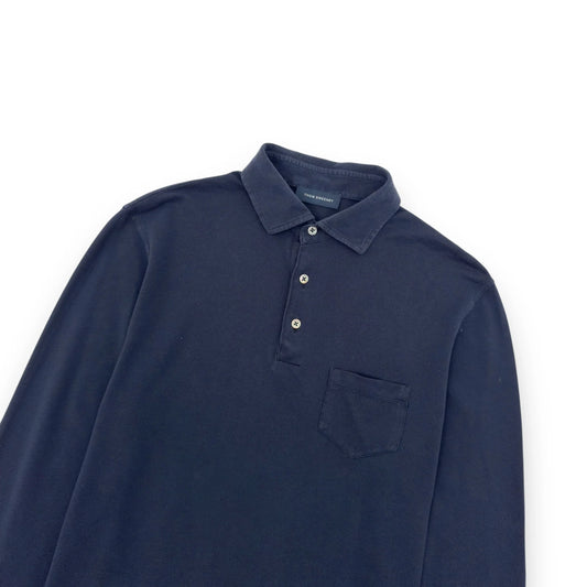 THOM SWEENEY LONG SLEEVE COTTON POLO SHIRT NAVY BLUE L
