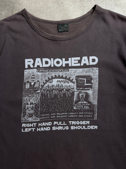 2001 Radiohead W.A.S.T.E "Amnesiac" Washed Brown Graphic Tee