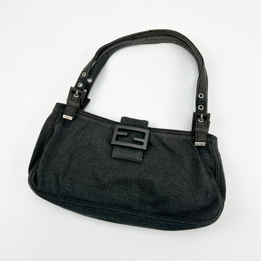 Vintage Fendi Dark Grey Jersey Cloth FF Buckle Shoulder Bag