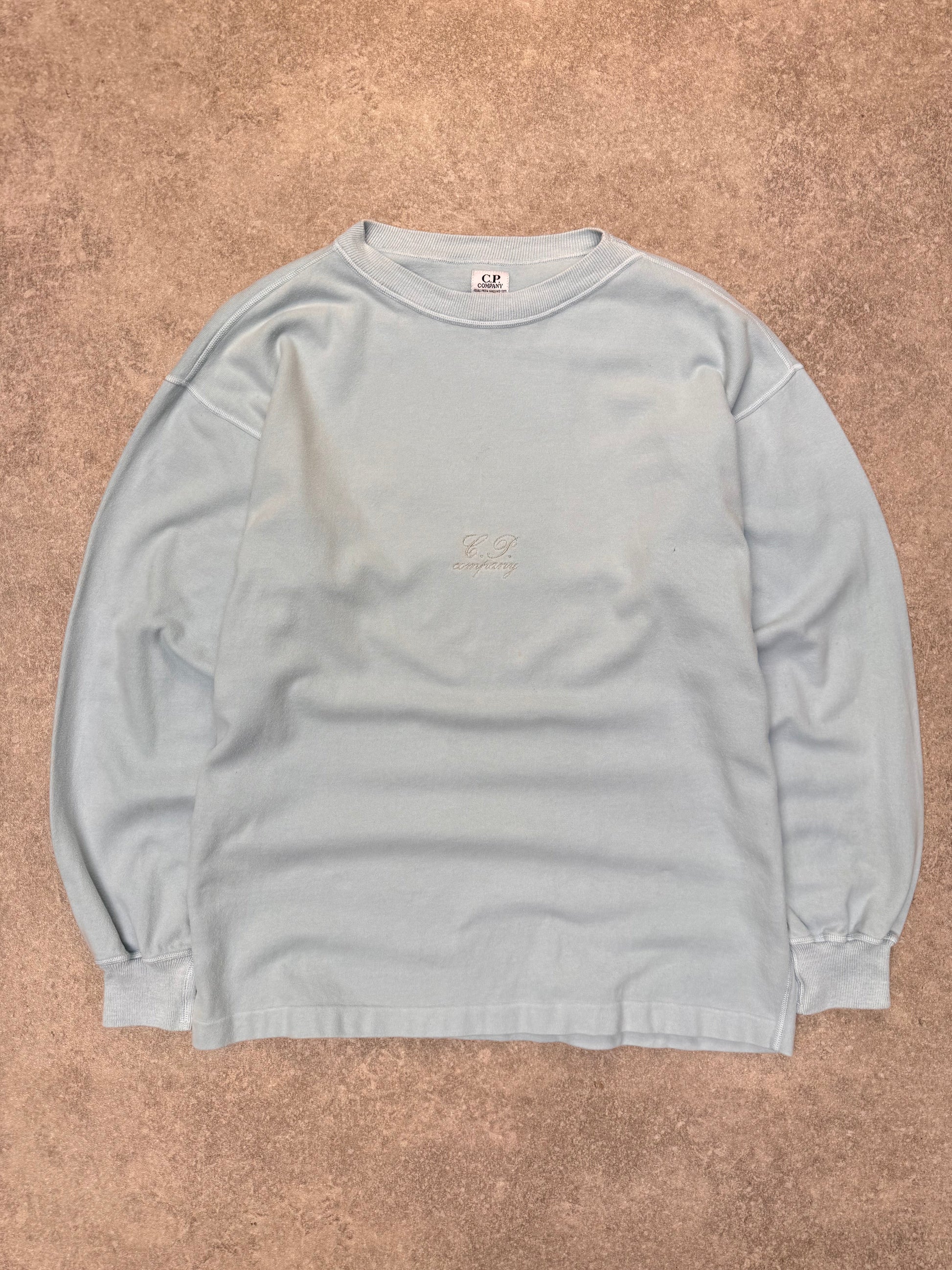 1980s C.P. Company Light Blue Logo Embroidered Sweater