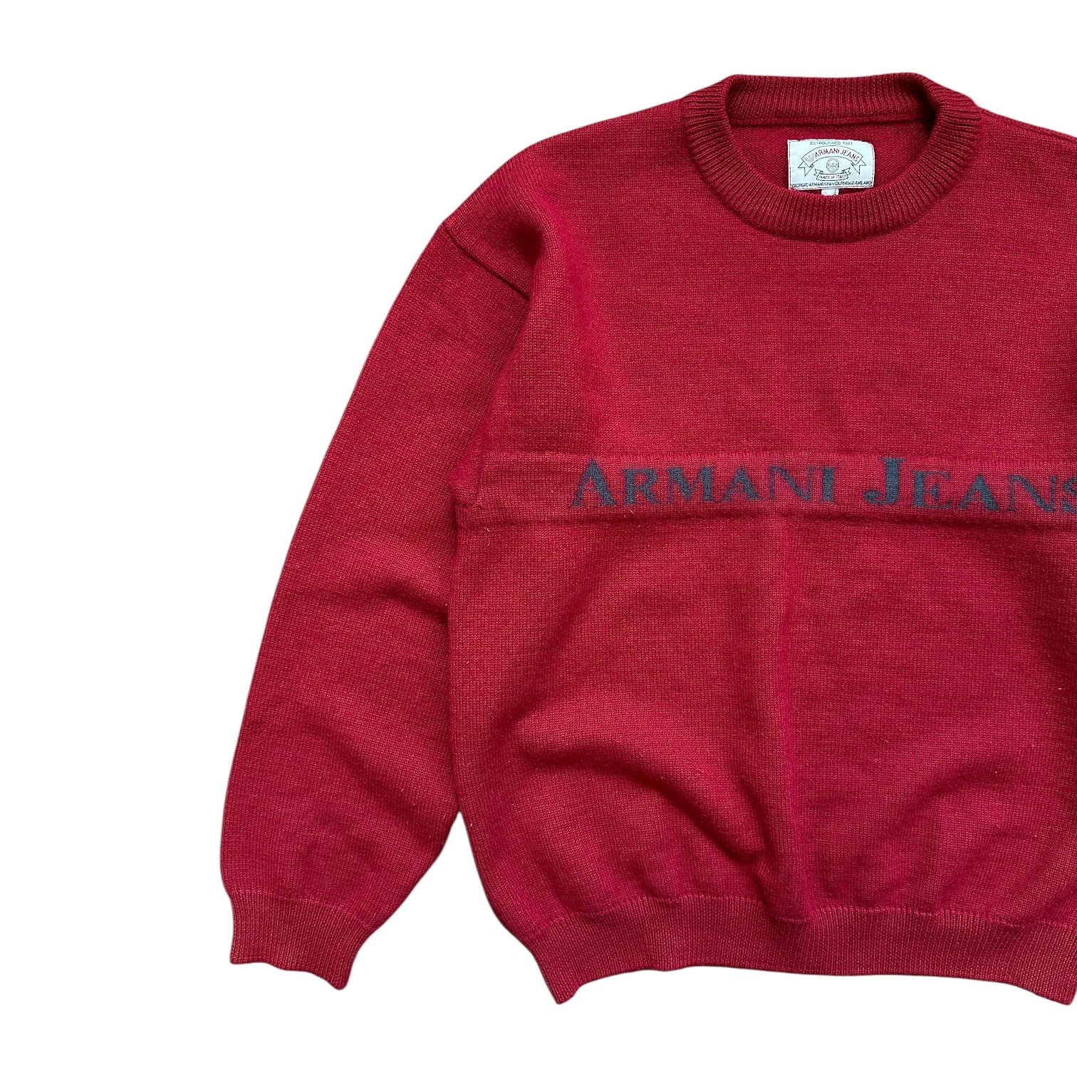 Armani Jeans Spellout Red Knit Sweatshirt