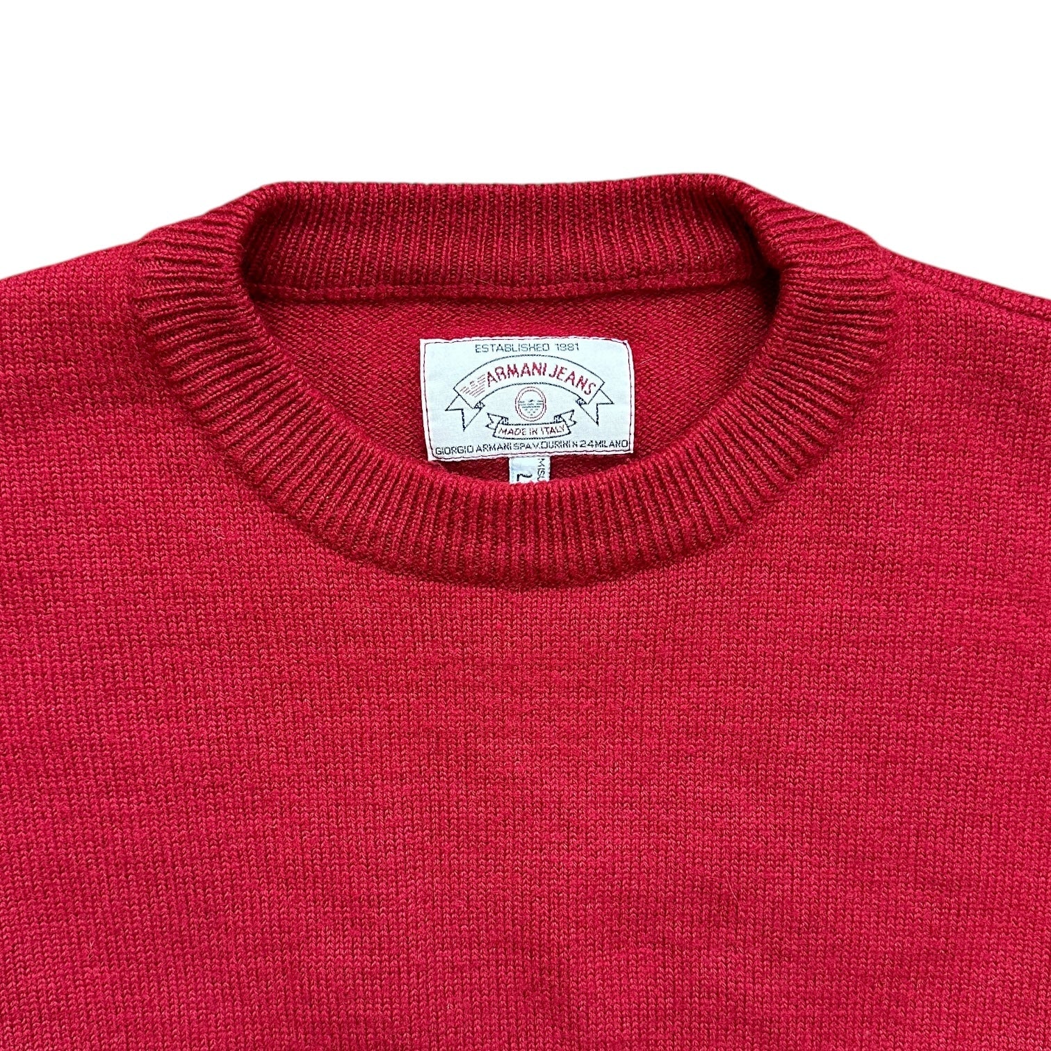 Vintage Armani Jeans Red Knit Sweatshirt. Super nice, short body, thick knit from the mid 1990s. Beautiful autumn piece!
