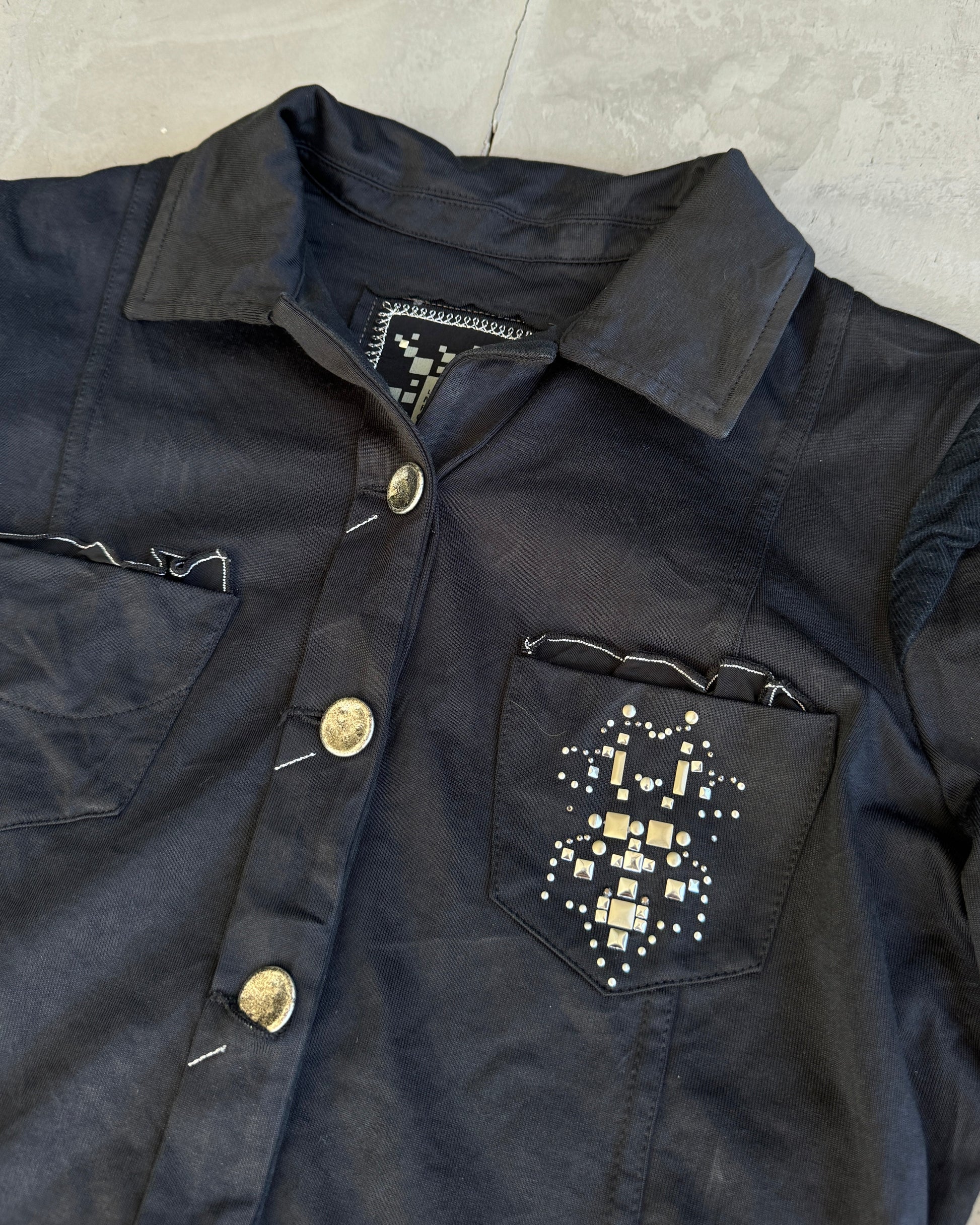 Marithé François Girbaud MFG Black Jacket with Silver Stitching